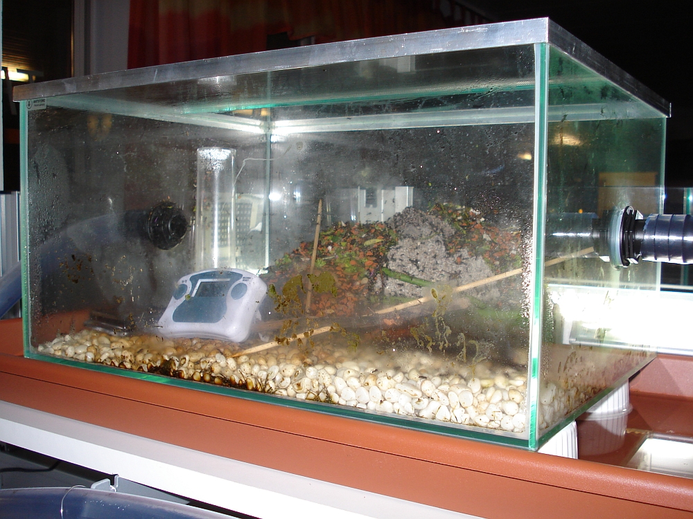 Im ganzen müssen die Tiere nun gute 10m Weg marschieren, um ins letzte Becken zu gelangen. Natürlich auch zurück. Die Anlage läuft jetzt seit 5 Tagen reibungslos. Wir hoffen, das bleibt so ;) Euren Senf Zu dem Werk dürft Ihr gerne hier anbringen...