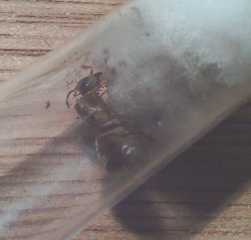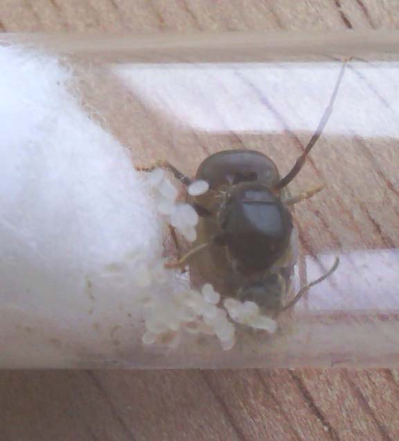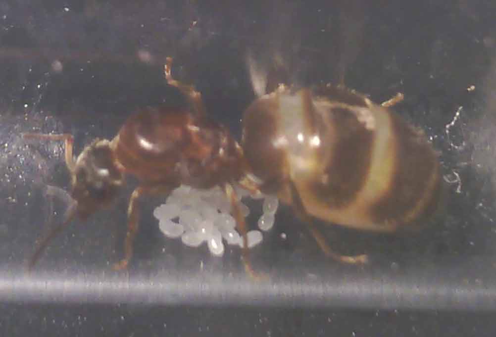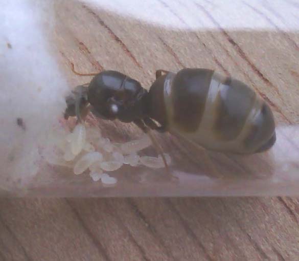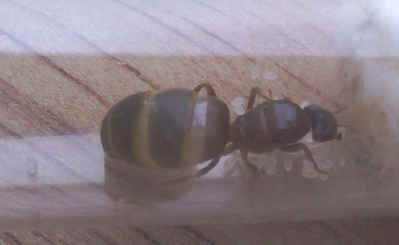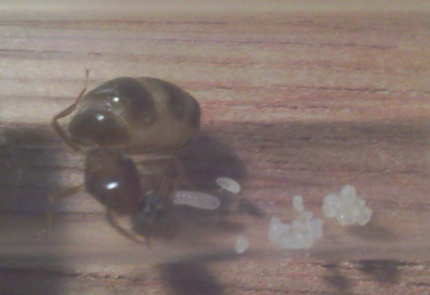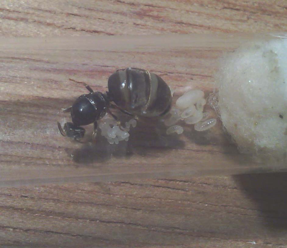 Diese Gyne entwickelt sich relativ normal. Eier und Larven in den verschiedensten Stadien.