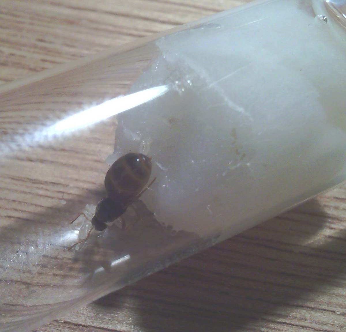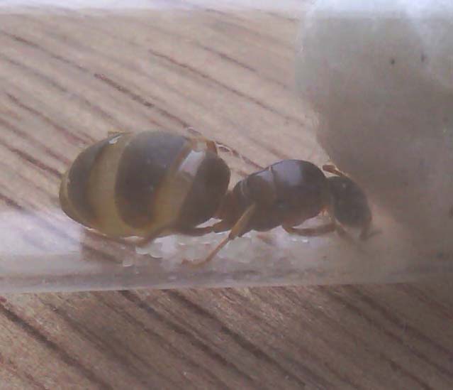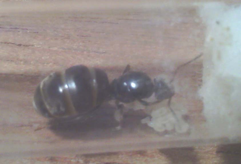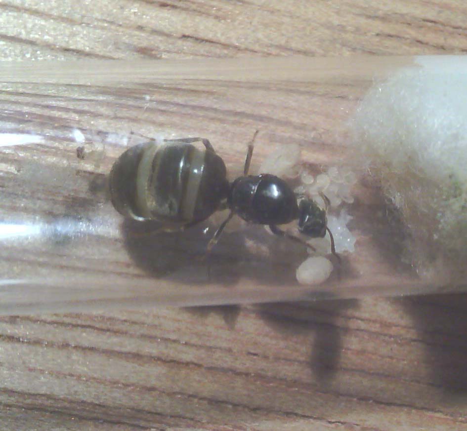 Nr. 5 Die erste, einer Lasius niger. Fleißige Brutpflege. Brut in allen Stadien. Normale Futteraufnahme. Pralle Gaster und n guter Gesamteindruck.