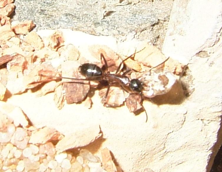 Die dritte Gattung/Art, die ich kürzlich noch dazu genommen habe, Temnothorax unifasciatus kamen nur deswegen noch in Frage, da ich sie mit Camponotus ligniperda zusammen in einem ausreichend großen Becken halten kann bzw. in einem Zweigbecken - da kann es auch gut sein, daß ich irgendwann noch Temnothorax nylanderi, die leichter zu Halten sind als Temnothorax unifasciatus, in einem anderen Erweiterungsbecken dazu nehme.