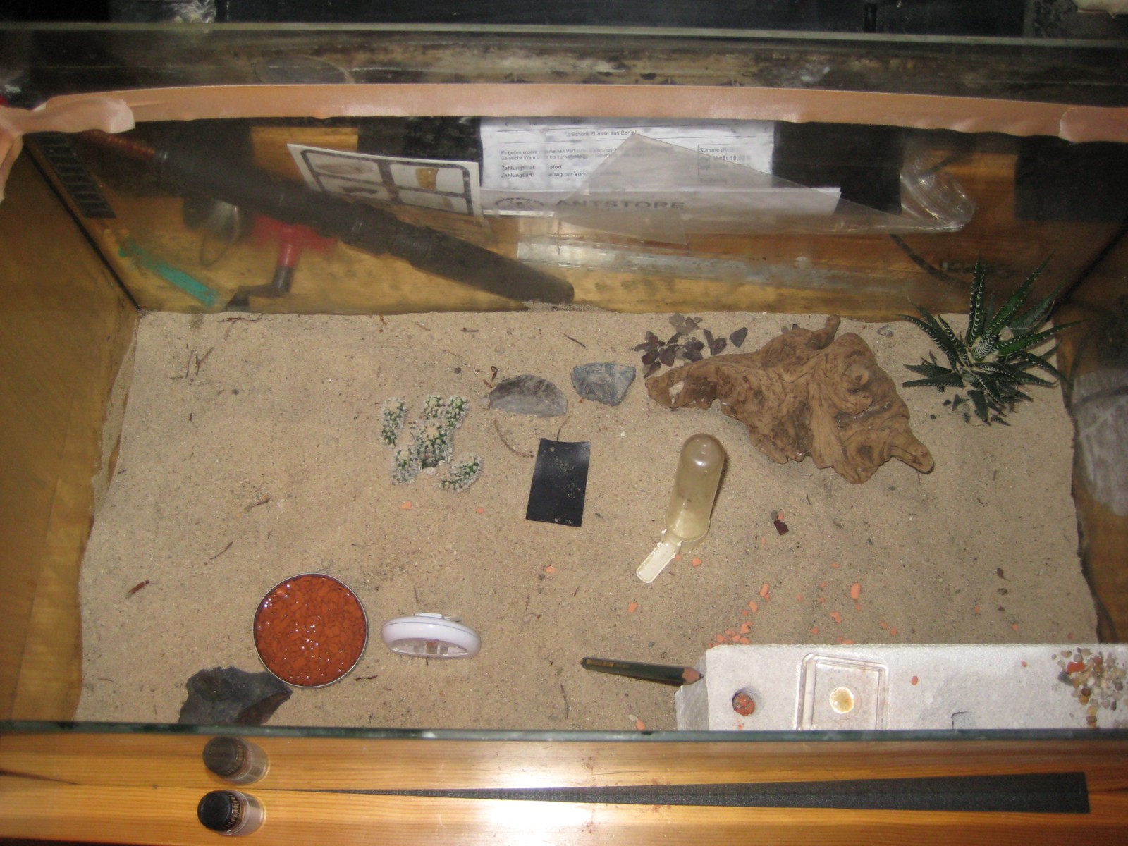 Ich werde die Kolonie ist einem Ytong nest halten, der in einem 60x30x30 Becken stehen wird.
