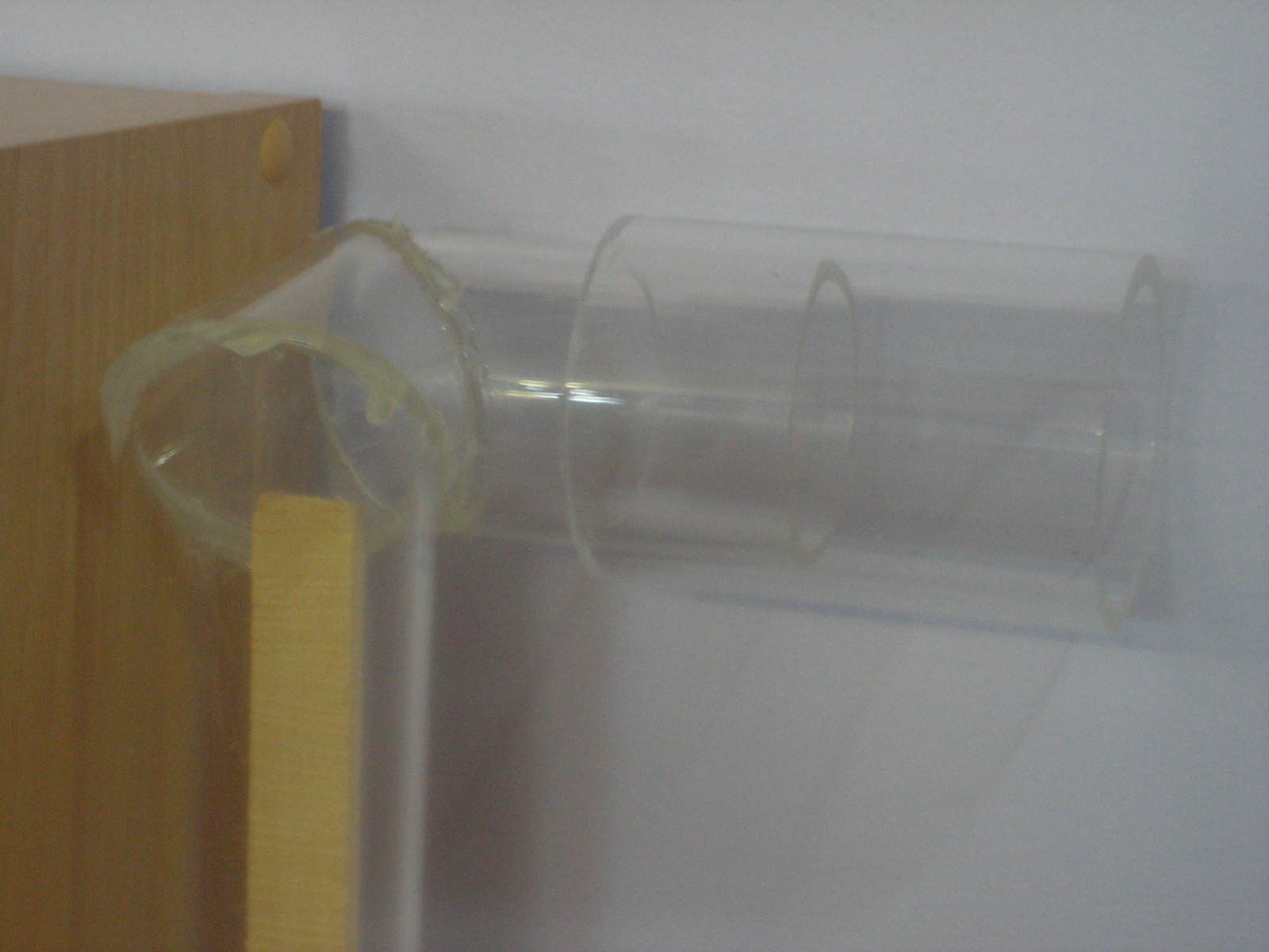 Here is another one of those L fittings we made , here it takes the tube along my bedroom wall to the tank , which is not there yet. Once connected this tube disappears throu the wall and back to the Setup in the shelving units.