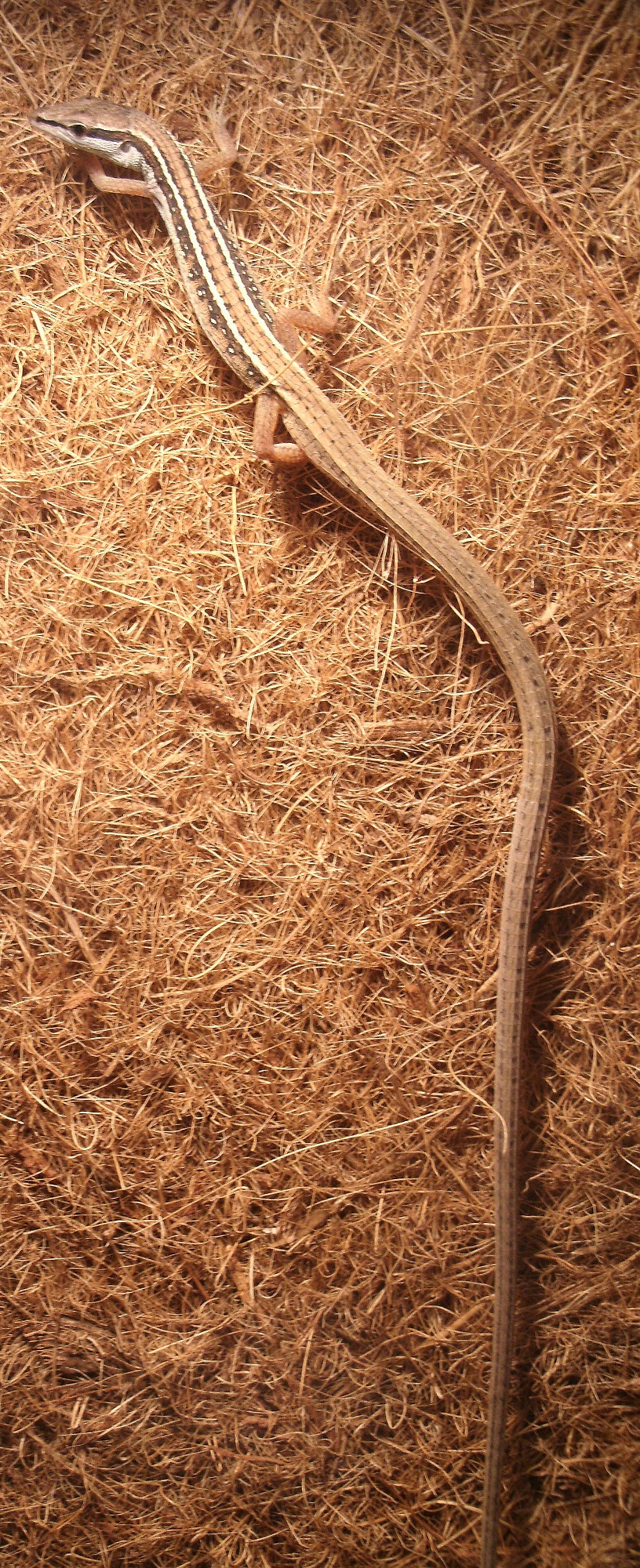 Von den etwa 30cm Echse sind nur 8cm Leib und etwa 22cm Schwanz.