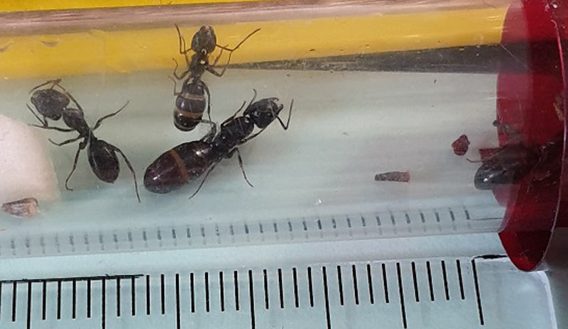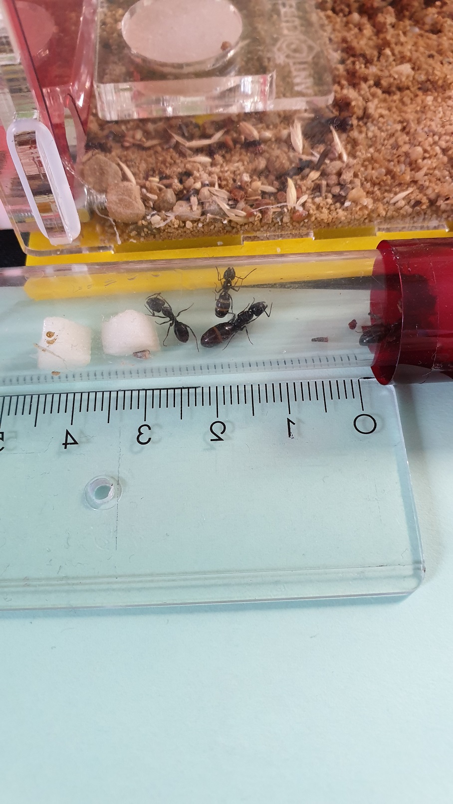Hallo. Auf unserer Terrasse haben wir einige Wegameisen entdeckt. Nun haben wir auch eine sehr große (wesentlich größer als die anderen) dort gefunden. Könnte das die Königin gewesen sein. Wir haben sie nun erstmal mit mehreren Arbeiterinnen in ein RG gesteckt und versorgt. Nun stellt sich die Frage, ob man diese als Grundlage für eine neue Farm nutzen könnte?