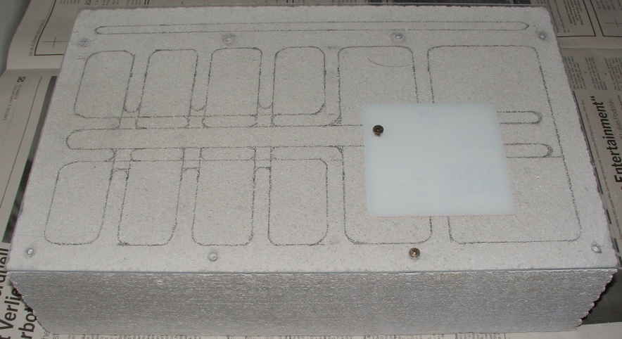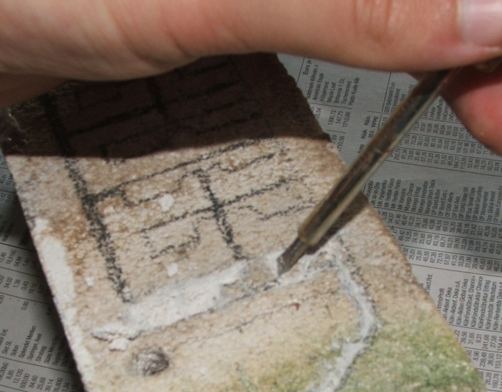 Danach folgt, wie im Bild zu sehen, eine der wichtigsten Phasen: ihr müsst die Umrisse der Kammern einritzen, da habe ich momentan einfach eine andere Möglichkeit, als das Ritzen mit dem Schraubenzieher.