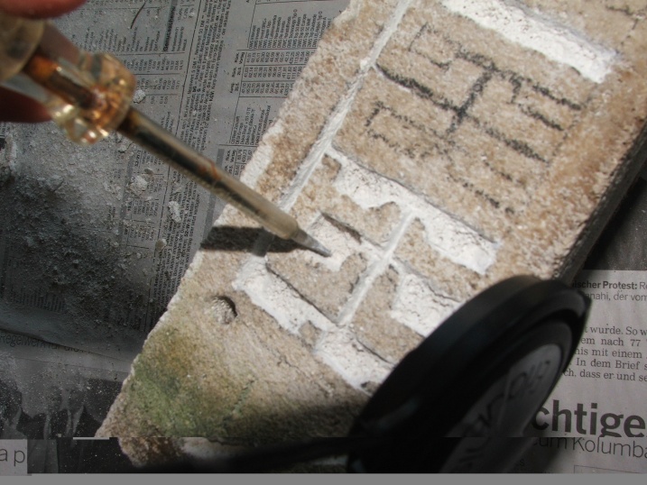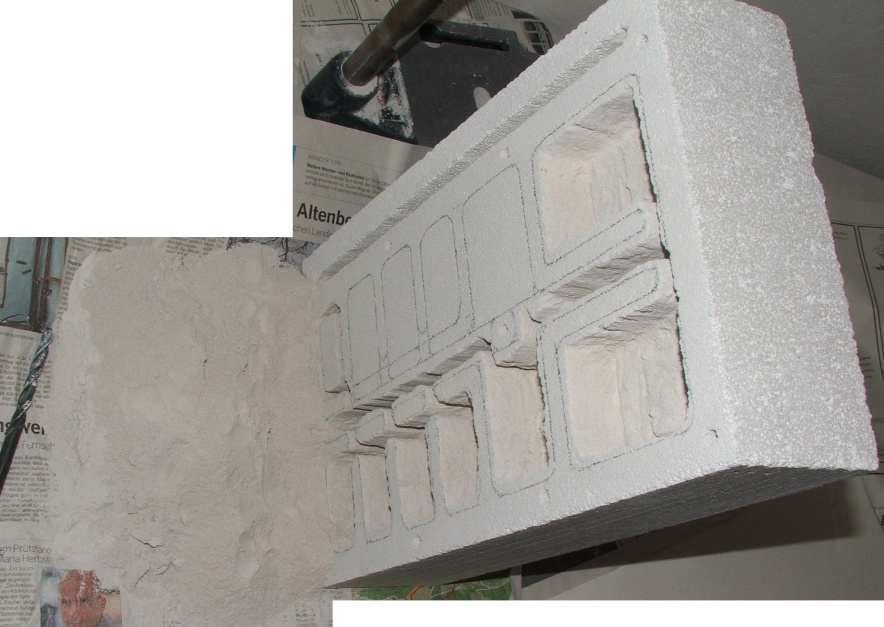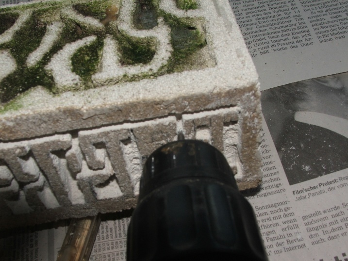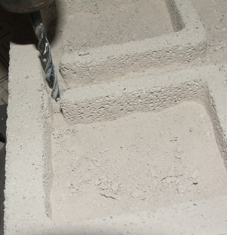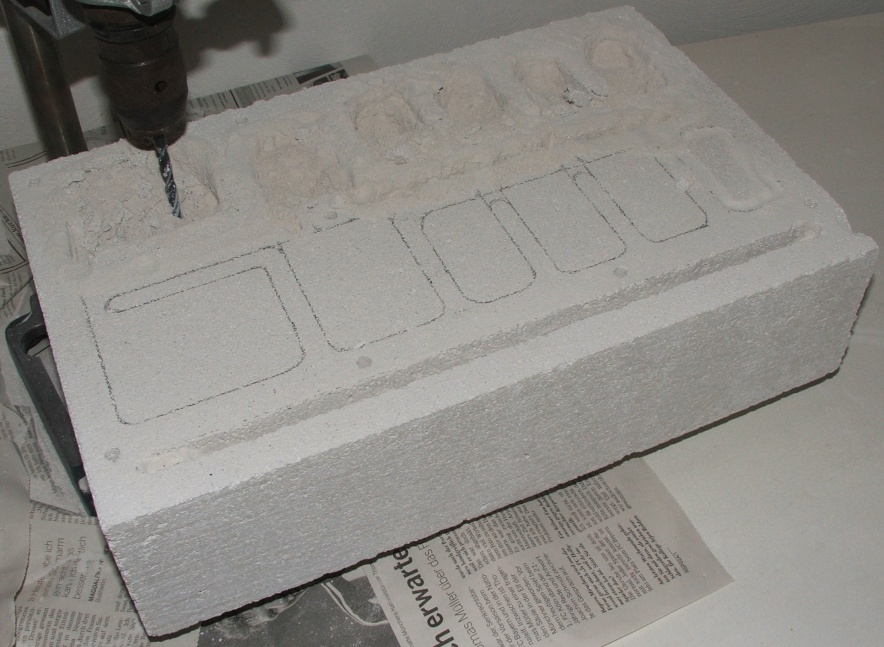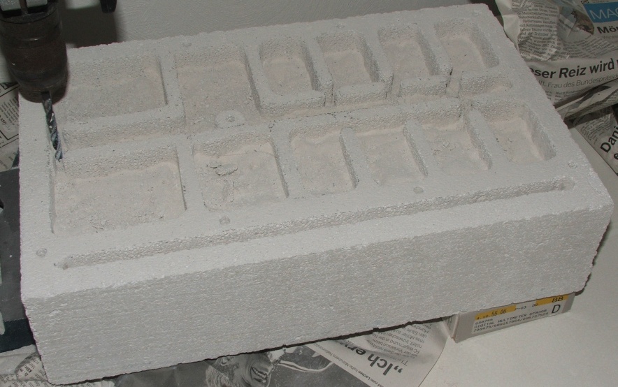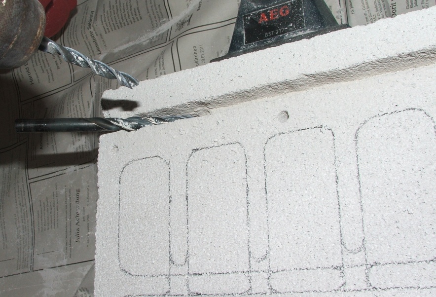 Da wir aber immer noch eine gewisse Tiefe in den Kammern haben wollen, müssen wir jetzt noch ein bisschen bohren, wie es nun gezeigt wird (einige Kammern sind schon schön herausgebrochen!), danach wieder den Staub ausklopfen!