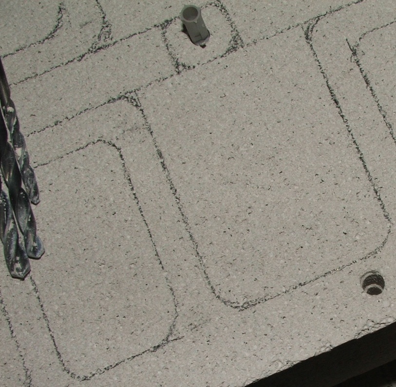 Man kann allerdings auch Gänge rausmeißeln, man fängt an einer Stelle an zu bohren, wie in Bild drei und meißelt von da ausgehend immer weiter in die gewünschte Richtung (Bild vier und fünf).