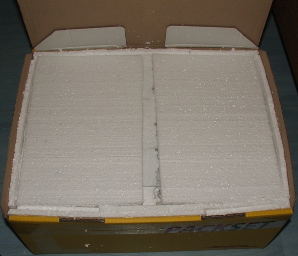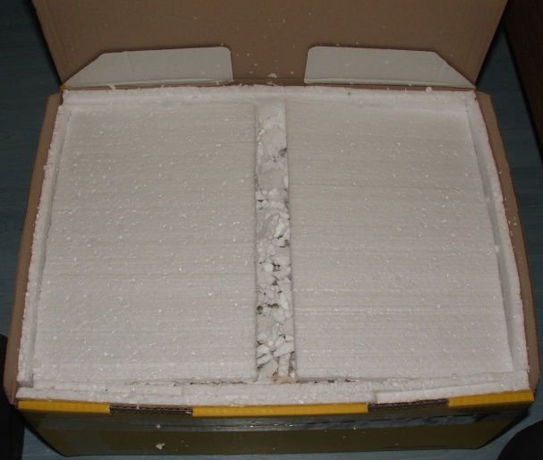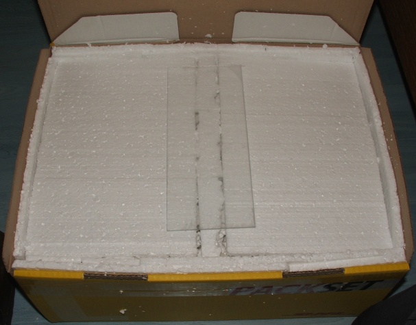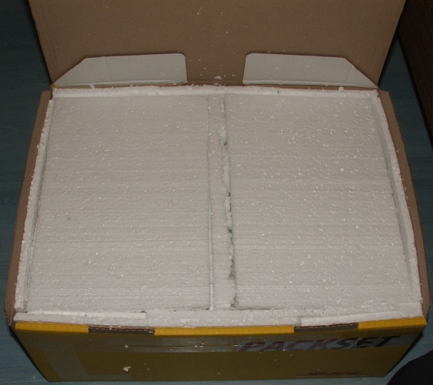Dick eingepacktes Nest, Scheibe festgeschraubt (nicht zu fest, soll ja noch mal abgenommen werden können und außerdem kommt nach fest los), an den Paketwänden ist Styropor, um Stöße abzufangen und um das Nest sind diese Verpackungsdinger, um zu heftiges Ruckeln oder ähnliches zu vermeiden.
