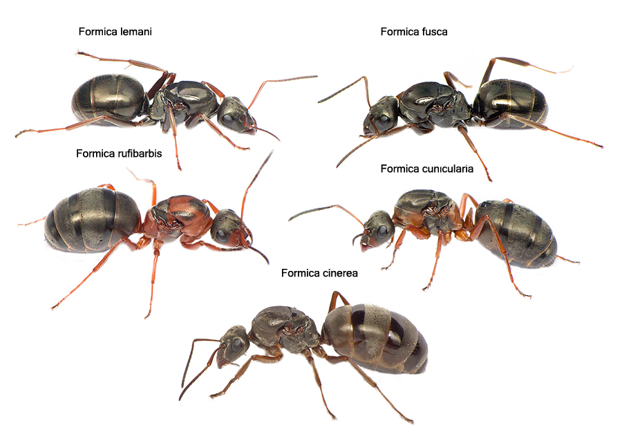 Bei Formica rufibarbis bzw. clare stimme ich trailandstreet zu, allerdings denke ich, dass die letzte Formica fusca ist. Ich sehe nämlich kein Rötung an der Unterseite der Brust (Thorax).