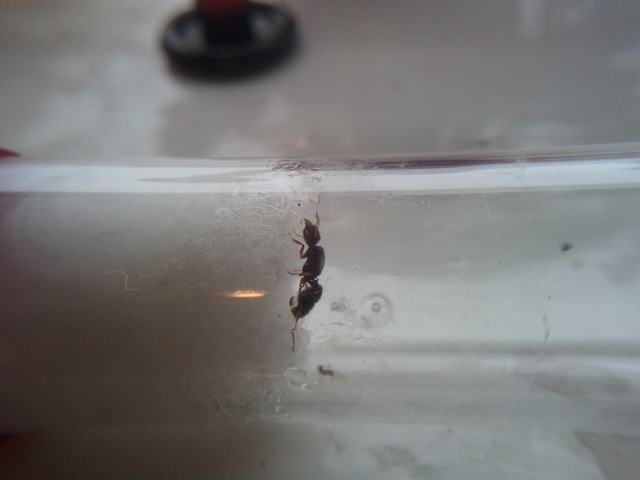 Some people might know that I had kept Pheidole before unfortunetly the queen died duo to all the music on my sisters birthday. so I asked for a replacement a soon as she died back in november.its now 2011 and finally its has arrived I was so happy. At fist I thought the queen was died but no she stated moving with her 4 little workers. They are now is the same box the other pheodole were in but I have changed it about you'll see. Hopefully I will post some pictures soon.