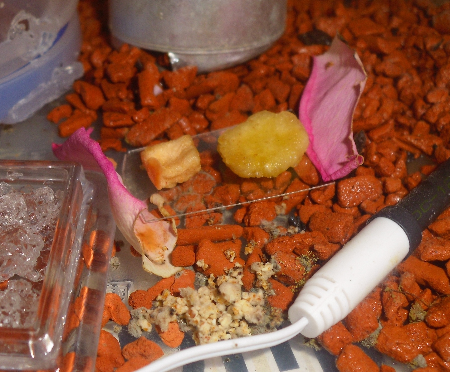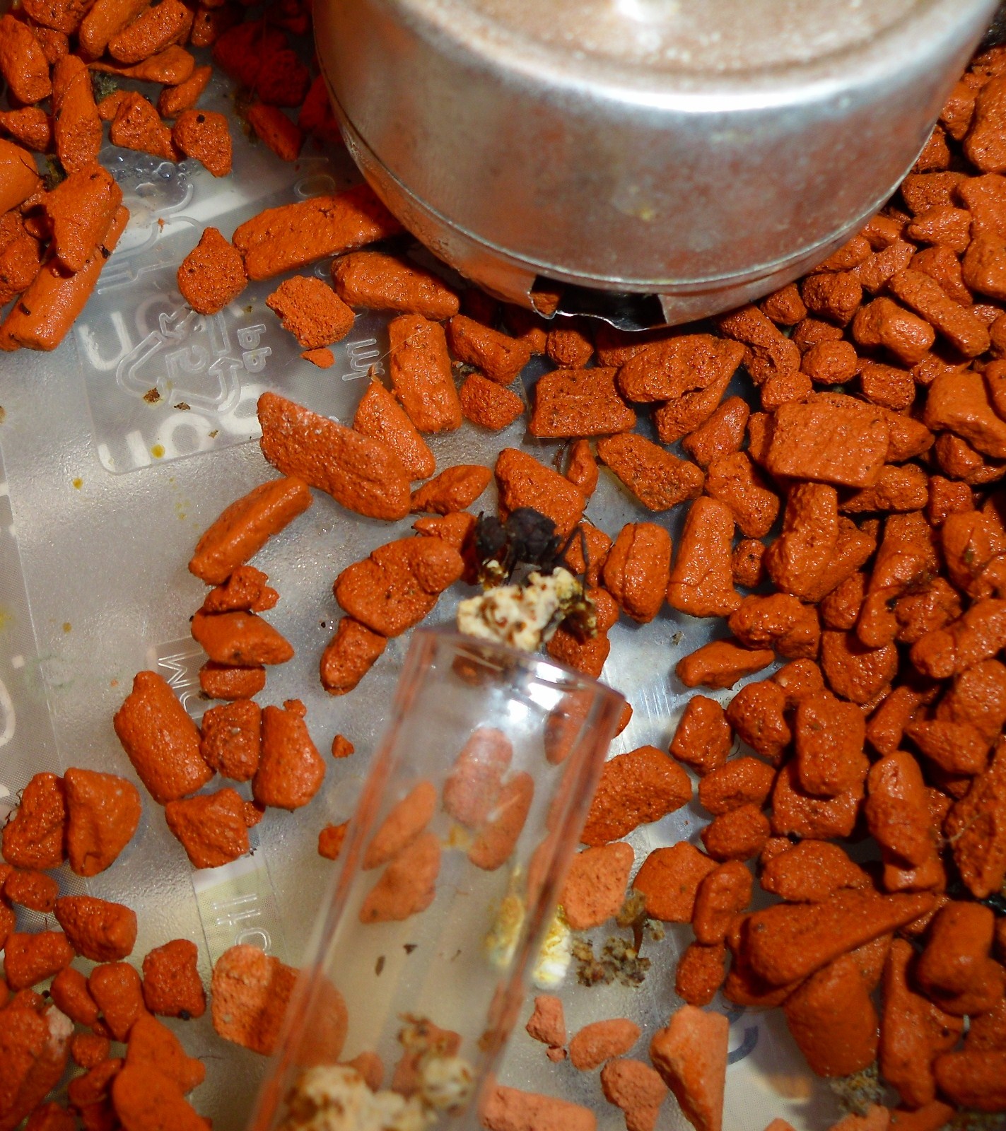 In dieser woche gab es leider einen Unfall. Die Heizmatte war explodiert, mit kleinem Knall und riesen Ausdehnung der Heizmatte. Zum Glück hatte ich noch eine kleinere 12x13 cm rumliegen. Habe aber erst nach 20 Std. gemerkt das diese nicht ausreicht, da sie die Temperatur nur auf max. 21° im Becken halten konnte. Also bin ich schleunigst in einen Zooladen geflitzt und musste dort ein Heizkabel kaufen, weil die eine erschreckend schlechte Auswahl hatten.