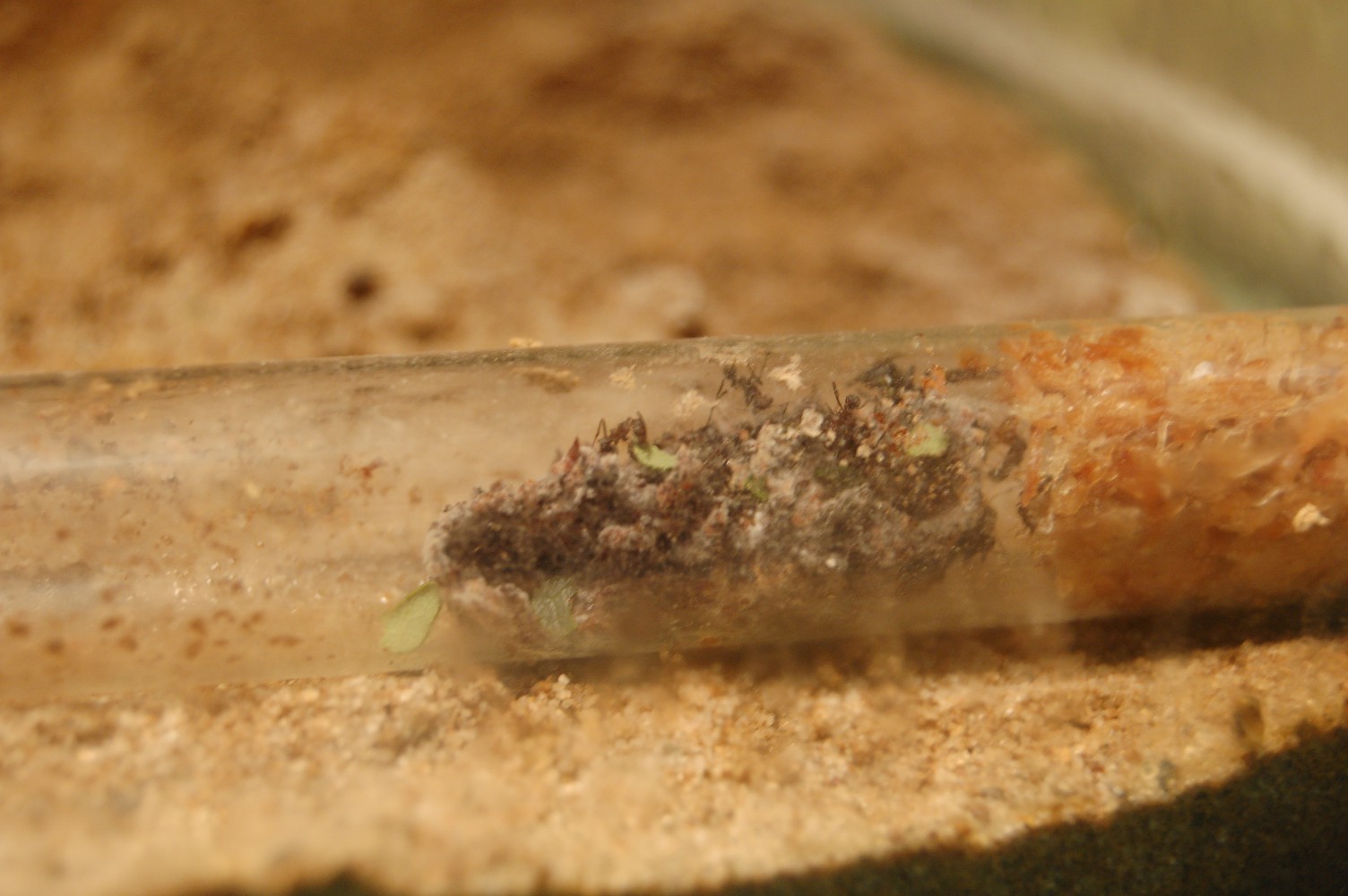 Hallo, in der letzten Zeit hat sich nicht allzuviel getan in meiner Acromyrmex octospinosus Jungkolonie. Bilder folgen noch.