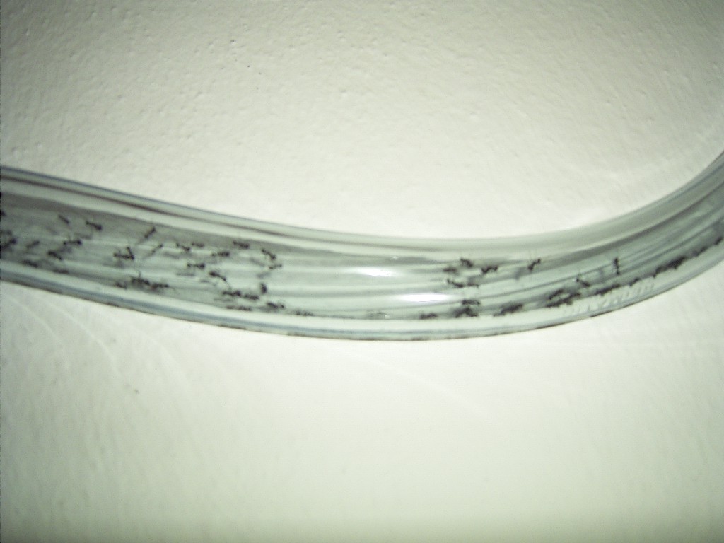 Nur dass hier nicht einige auf die Idee kommen und wieder Sprüche reisen wie "Ja, ich sagte doch schon immer die kann man nicht halten, oder wieso werden alle Haltungsberichte abgebrochen. Nein nein, meine Acromyrmex haben sich wunderbar entwickelt. Habe heute das 2. Becken an einem 5 meter Schlauch angeschlossen. Sie haben sich einen großen Hügel gebaut und der Pilz scheint wohl unter dem ganzen Hügel hindurch zu gehen. Die Kolonie ist meiner Schätzung nach auf 700-800 Ameisen angewachsen. Heute wird der Bericht noch nicht SO großartig erweitert, da ich mit den ersten Fotos nur ein Gesamtbild der Anlage erstellte. Weitere Details werden noch folgen. Die Fotos sind während der Arbeit entstanden also bitte entschuldigt die nicht so gute Qualität der Fotos.