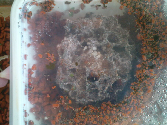 Wie ihr an den zwei Bildern sicher gesehen habt, musste ich das Becken mit Hilfe einer Plastikscheibe halbieren. Der Pilz war doch noch nicht groß genug für das 30x20x20 Becken, das merkte ich dadurch, das die Acros sich nur noch damit beschäftigt haben Seramis um den gesamten Pilz zu Bauen, was natürlich eine Heidenarbeit ist. Deshalb nahm ich mir die Freiheit ihnen ein bisschen unter ihre sechs Arme oder Beine zu helfen ;).