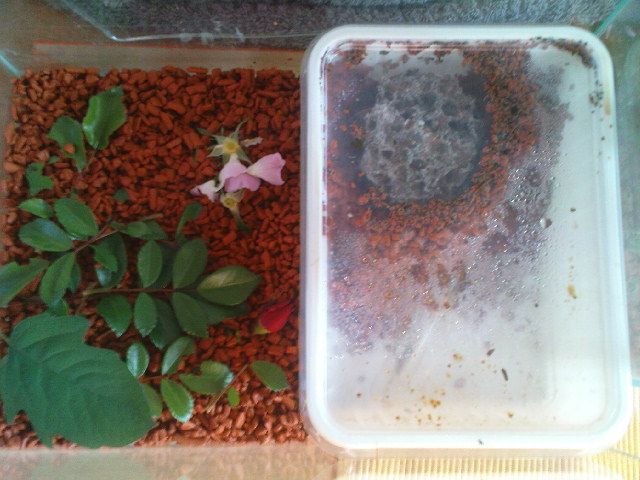 Da ich jetzt Klee und Löwenzahn und auch Liguster eine weile ausprobiert habe, wollen sie jetzt irgendwie nicht mehr so viel davon wissen ,nur Klee läuft noch recht gut, aber mir ist es etwas zu blöd die ganze Zeit Klee zu zupfen, also steige ich wieder auf meine Brombeeren und Rosen um. Obwohl ich sagen muss. das die Brombeeren auch nur 2- oder 3-mal genommen werden und es den Acros dann an Abwechslung mangelt, das einzige was sie wirklich konsequent nehmen ist die Rosa Mozart und verschiedene Blüten von anderen Pflanzen :).