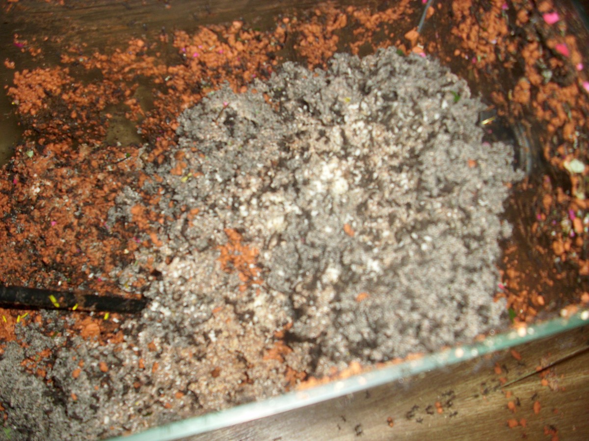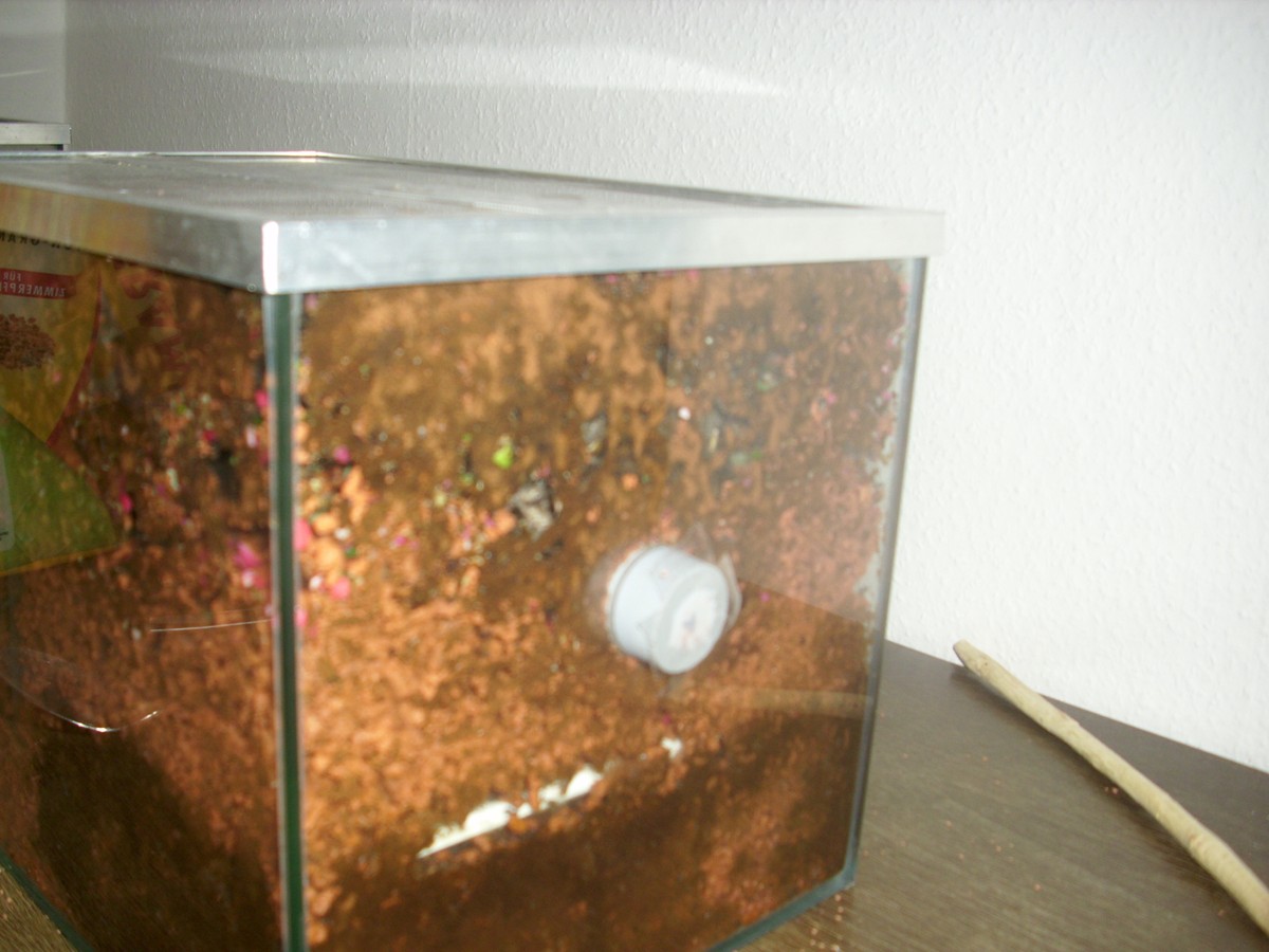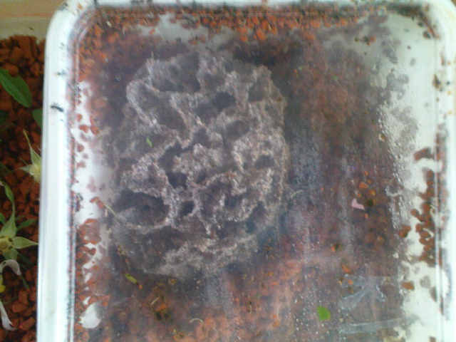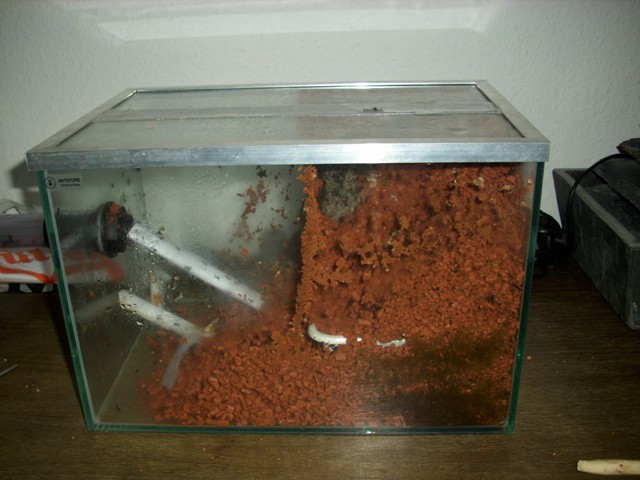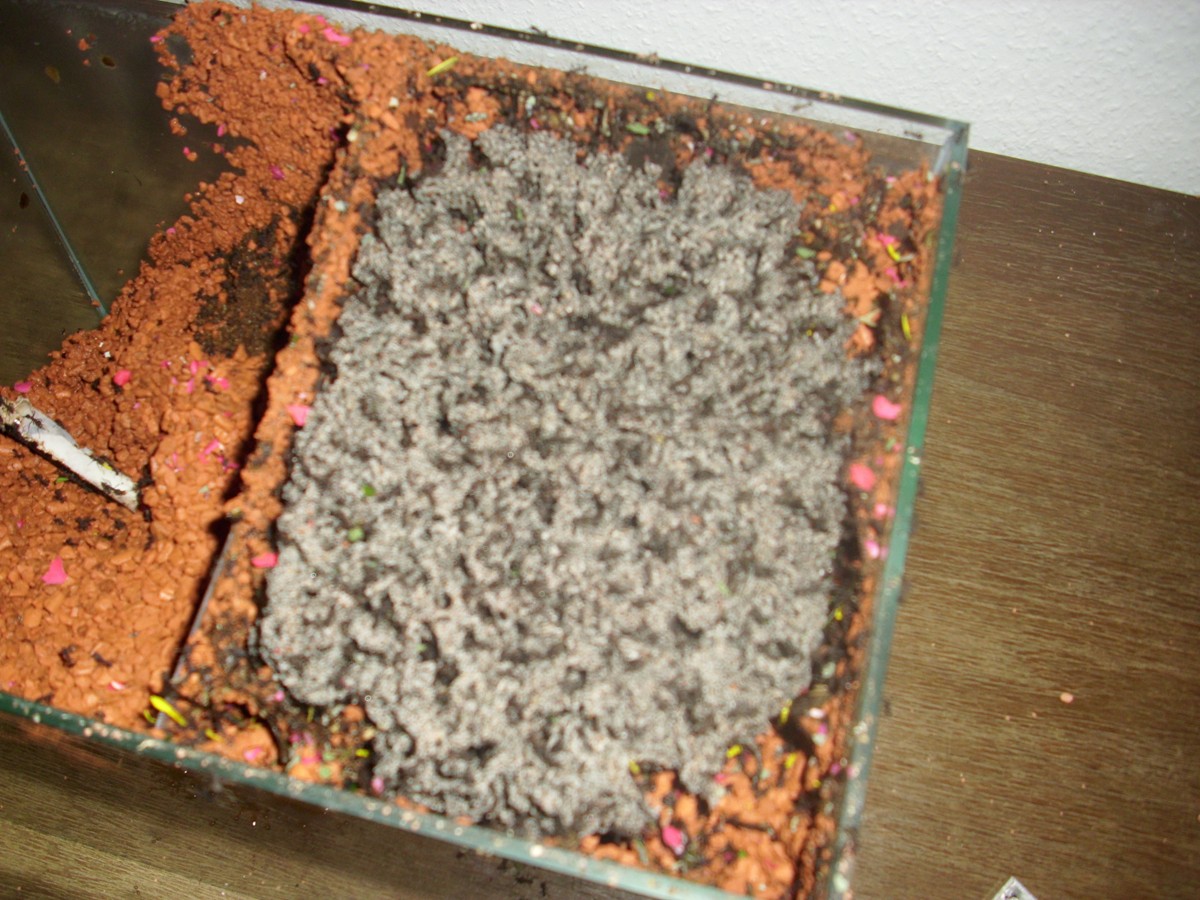 Lange ist es her, als ich das letzte Mal geschrieben habe und es ist in dieser Zeit viel passiert :). Das eine wäre das ich nun die vergrößere nun komplett entfernt habe, da sie auch schon angefangen habe im Futterbecken einen Pilz zu Kultivieren. nun hoffe ich das der Pilz schon groß genug ist, er füllt nun gute 1/3 des 30X20X20 Beckens aus und ich dachte mir wenn sie schon in dem Futterbecken einen kleinen Pilz anbauen können schaffen sie es da erst recht, wo sie Seramis und noch mehr Feuchtigkeit zur Verfügung haben. Bilder von der Vergrößerten Anlage davor habe ich zwar aber sie sind leider total schlecht, aber ich habe Bilder von der Kolonie wie sie jetzt aussieht :)