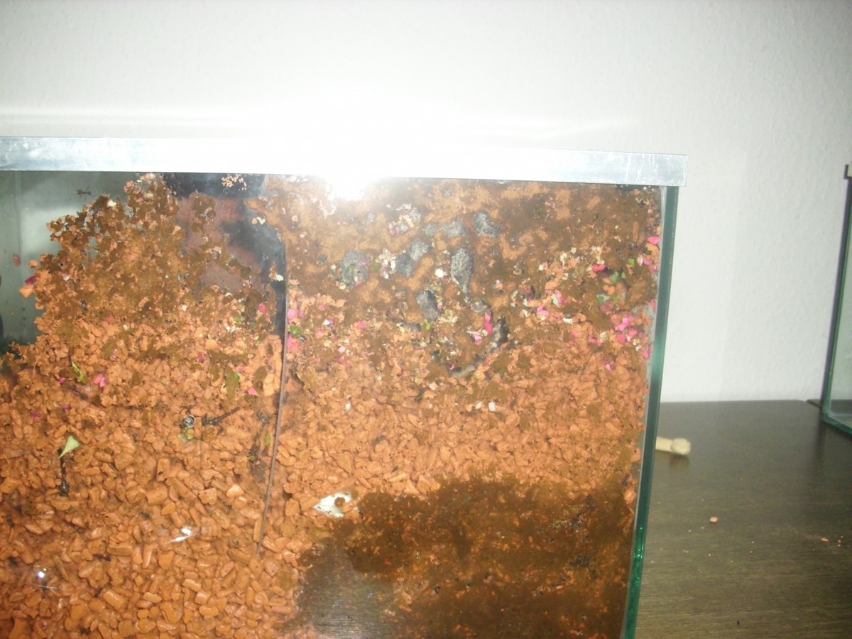 Wie man hier sieht, war der Pilz schon an den Seiten dran und hat den ganzen Bereich ausgefühlt. Außerdem musste auch endlich ein drittes Becken her, weil sie den Müll schon dort lagerten. Es war wirklich allerhöchste Eisenbahn :)