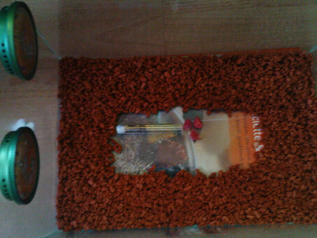 So Hallo da bin ich mal wieder. Sorry damit es so lange mit den Bildern gedauert hat aber nun sind sie da :). Meiner Kolonie geht es sehr gut vorallem jetzt wo es wieder frisches Futter gibt. Ja was soll ich noch sagen die Konstruktion hat mir für meiner Anfangskolonie extrem gut geholen. Es war Erstens Dunkel, Zweitens Feucht, Drittens war eine leichte Luftzyrkulation da, und Viertens es bieten viel PLatz die feuchtigkeit bleibt drin und wenn es voll ist kann man mit einer kleinen Tupperware (Frischhaltebox) weiter machen, der Pilz ist dann stark genug wenn das Teelichtbecken ausgefühlt ist ;). es kann euch vielleicht verwundern wenn sie doch noch Seramis rein tun oder ihn vor den eingang legen aber das ist vollkomm ok. Bei mir ahben sie 2 oder 3 mit reingenommen oder vor dem eingang haben sie ein paar rangelegt :).