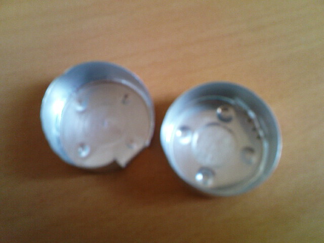 da sieht man die zwei Teelichterdeckel das eine ist aufgeschnitten und das andere hat 3 löcher
