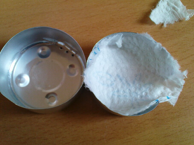 Hier habe ich ein Saugtuch reingelgt und mit Zwei tropfen aus der Pingpette befeuchtet