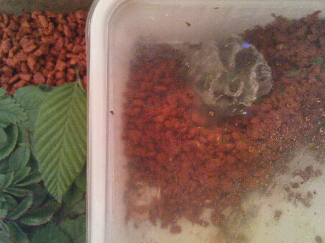 Wie ihr sehen könnt habe ich ihn zwar da rausgeholt als ich sah, dass sie anfangen draussen weiter zu bauen. Ich habe jetzt wieder das gleiche Prinzip angewendet. wie ihr sehen könnt ich habe die Kolonie sprich Pilz in eine Plastikbox getan (ich glaube da war fleisch drin oder so). Also wieder ein kleiner Raum wo viel Luftfeuchtigkeit gespeichert werden kann. Die Ameisen regulieren das von ganz alleine, wie ihr sehen könnt haben sie extrem viel seramis um den Pilz gemacht :) ich berichte dann wie es weiter geht. Mein plan ist wenn der Pilz die Box (20 cm lang, ca.10 cm breit, und ca. 5cm hoch) ausfüllt hat den Deckel einfach auf zu machen. ich denke dann ist er stark genug in den 30 X20X20 becken zu wachsen. denn es hat vorher garnicht funktionniert - selbst im Reagenzglas wollte er nicht richtig wachsen, obwohl die einzelne königin Seramis und so zur verfünfung* hatte. Naja jetzt geht es ja :) ich meld mich :)