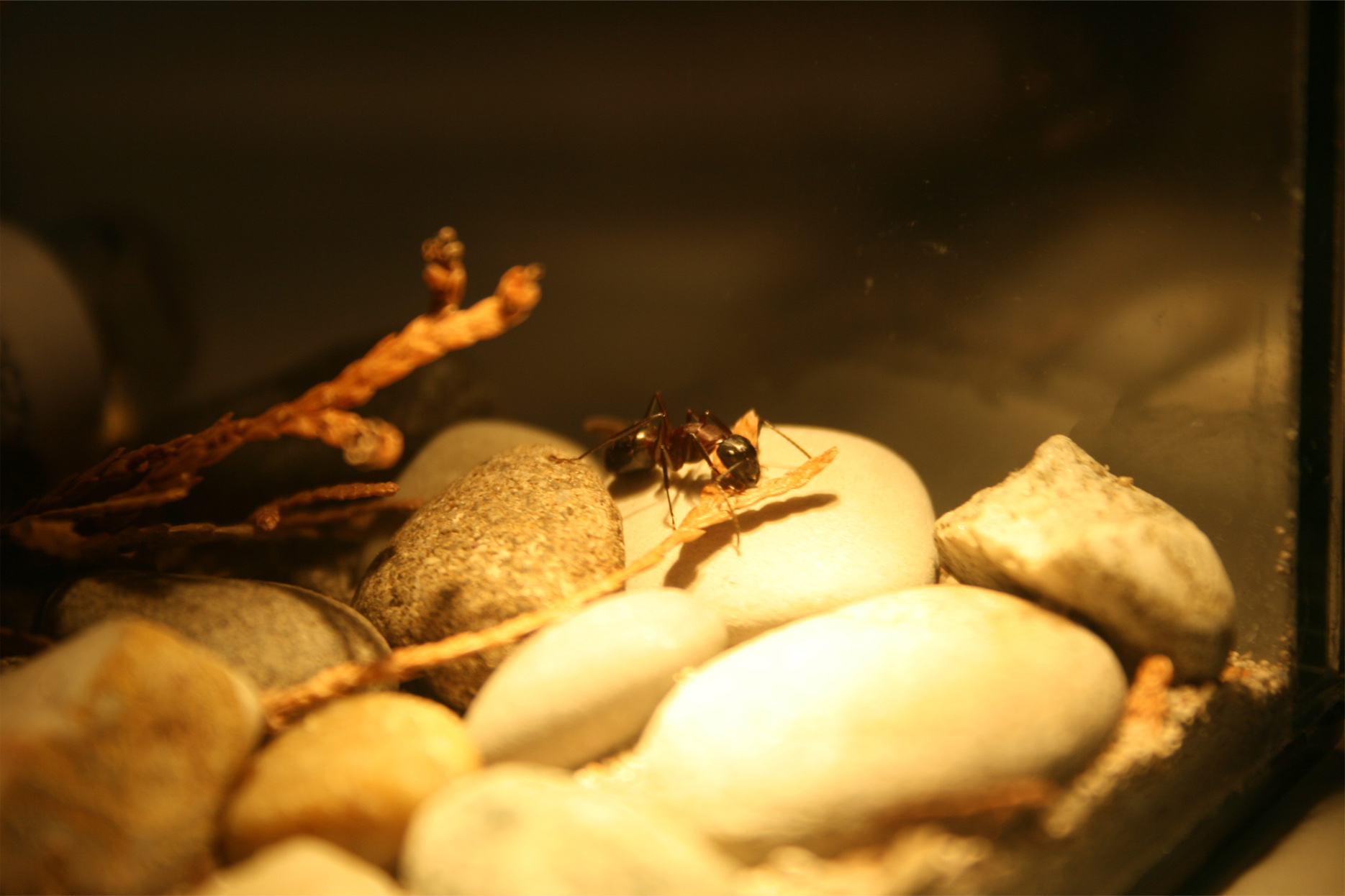 Habe heute festgestellt, dass trotz der Steinchen im Getränkenapf eine Ameise (Camponotus ligniperda) ertrunken ist!