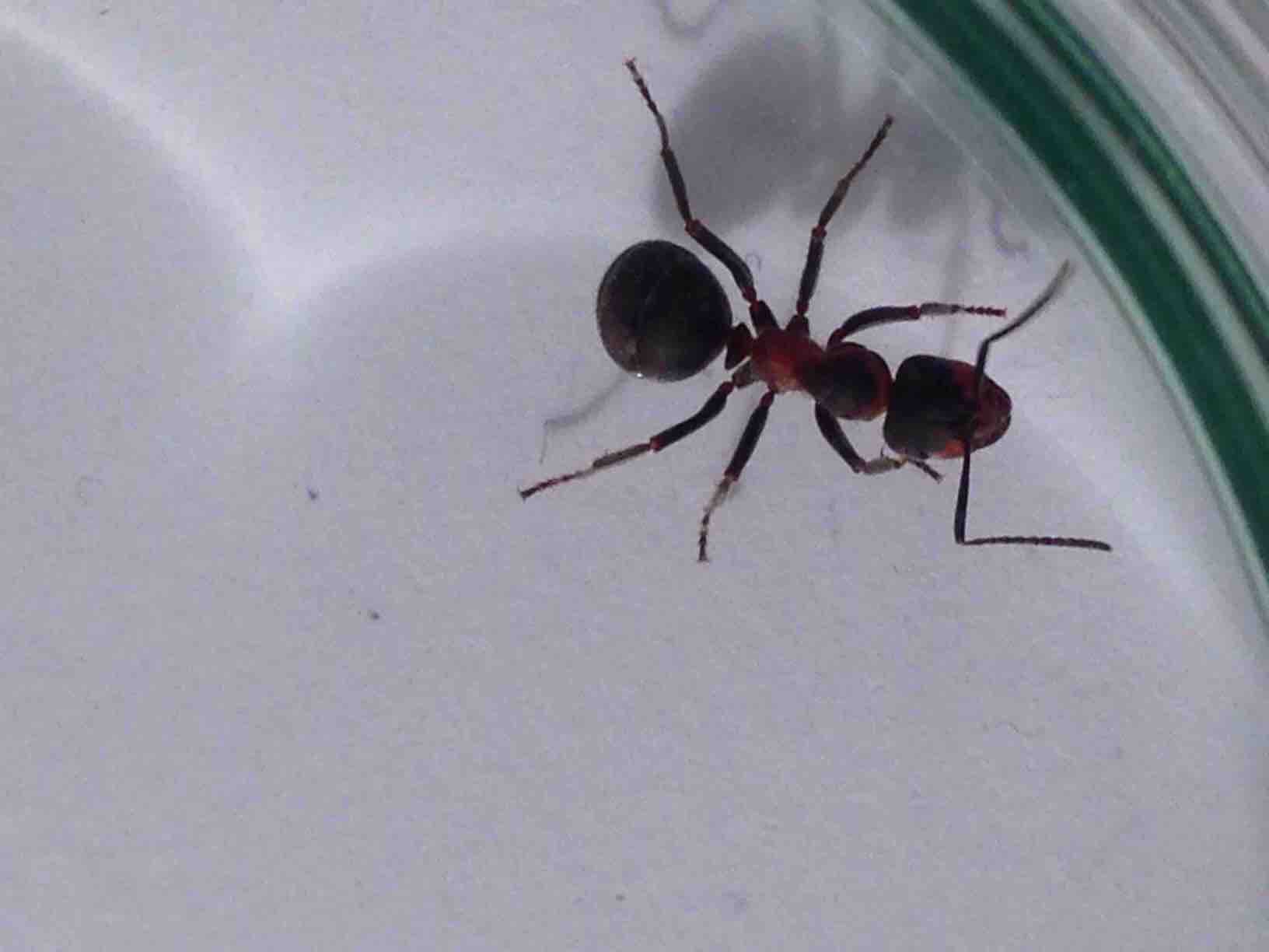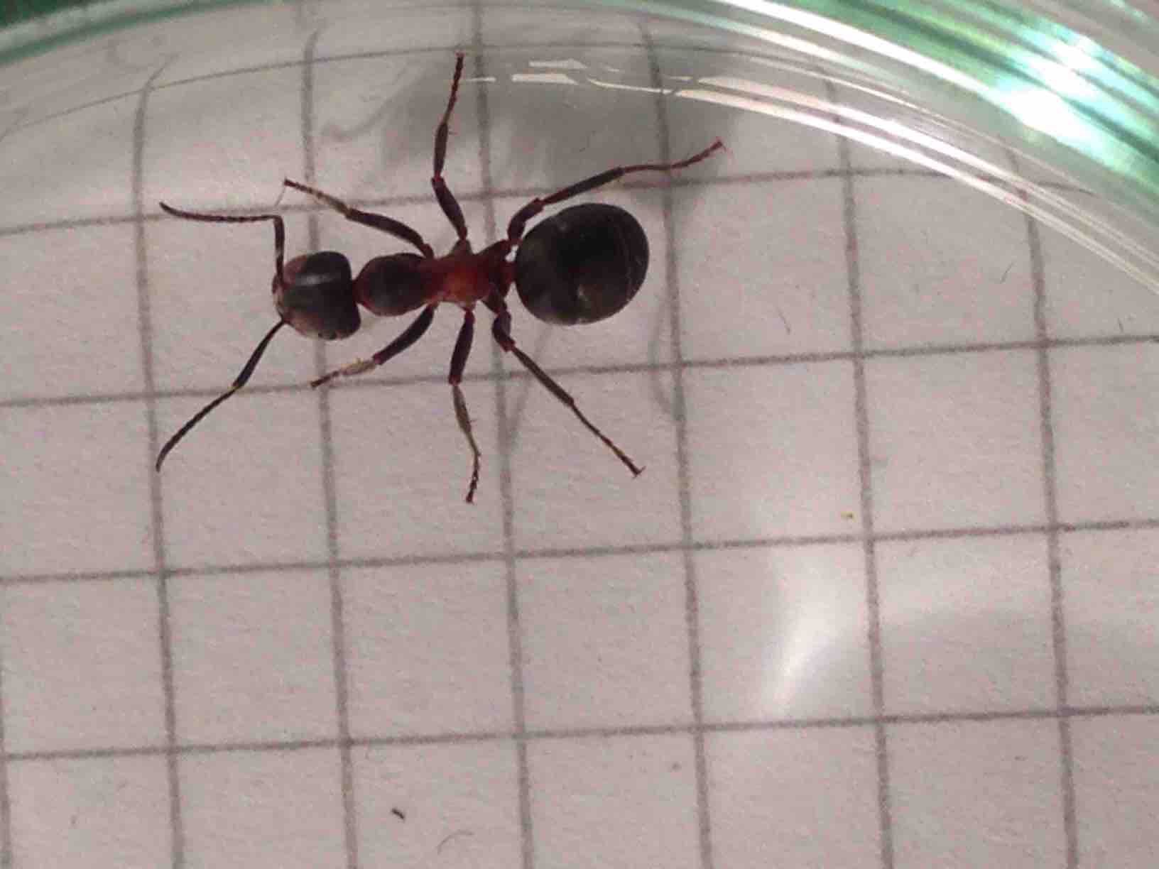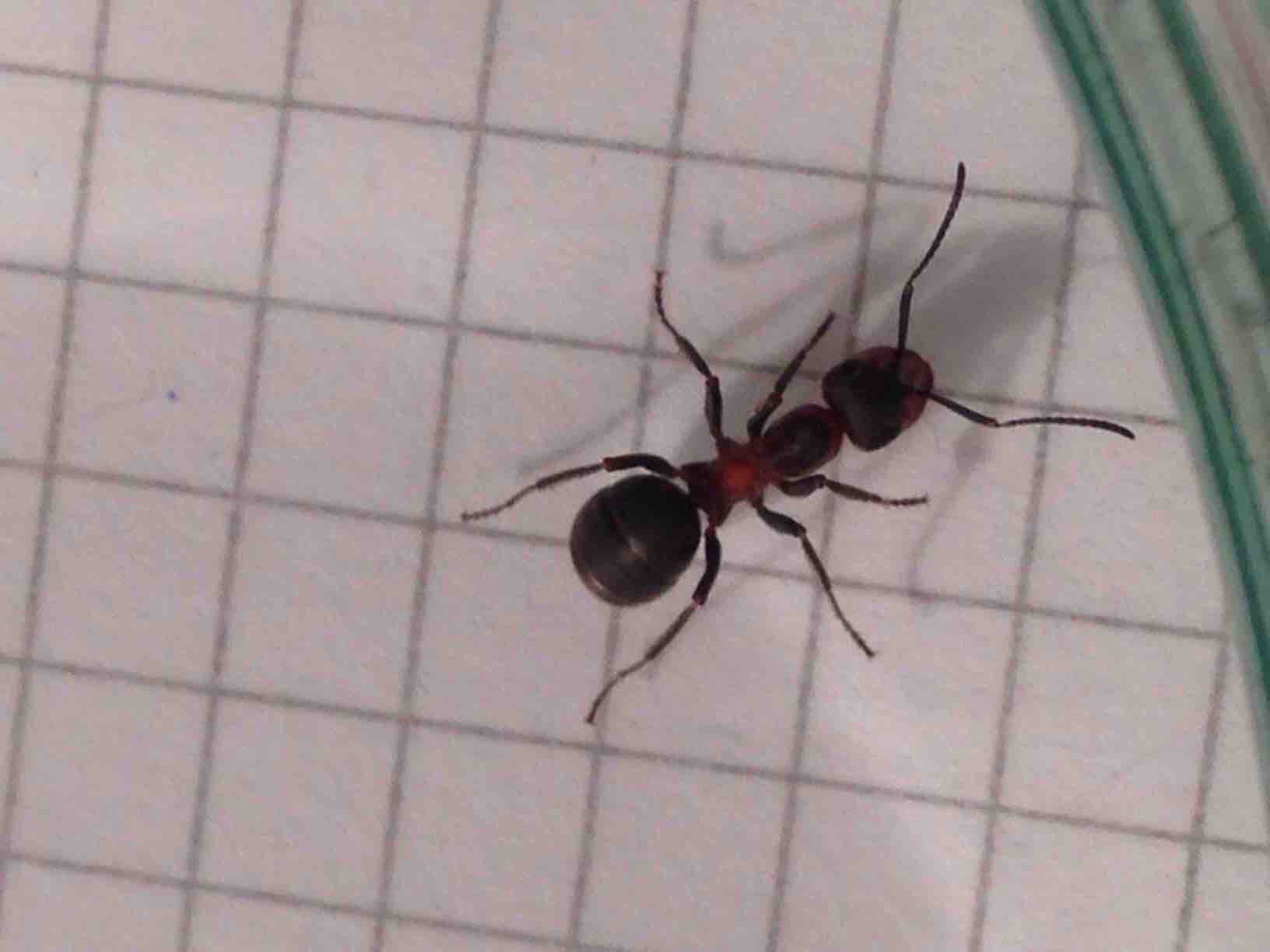 Meine Grossmutter besitzt ein kleines Stück Wald. Als wir heute dort Picknicken waren, entdeckte ich einen Ameisenhaufen. Trotz des Winters war dank der milden Temperaturen (13°) eine gewise Aktivität vorhanden. Obwohl ich wusste das es ziemlich sicher Waldameisen sind und diese in der Schweiz geschützt sind, entnahm ich drei Arbeiterinnen und transportierte diese lebend nach Hause. Jetzt wüsste ich gerne um welche Art es sich genau Handelt.