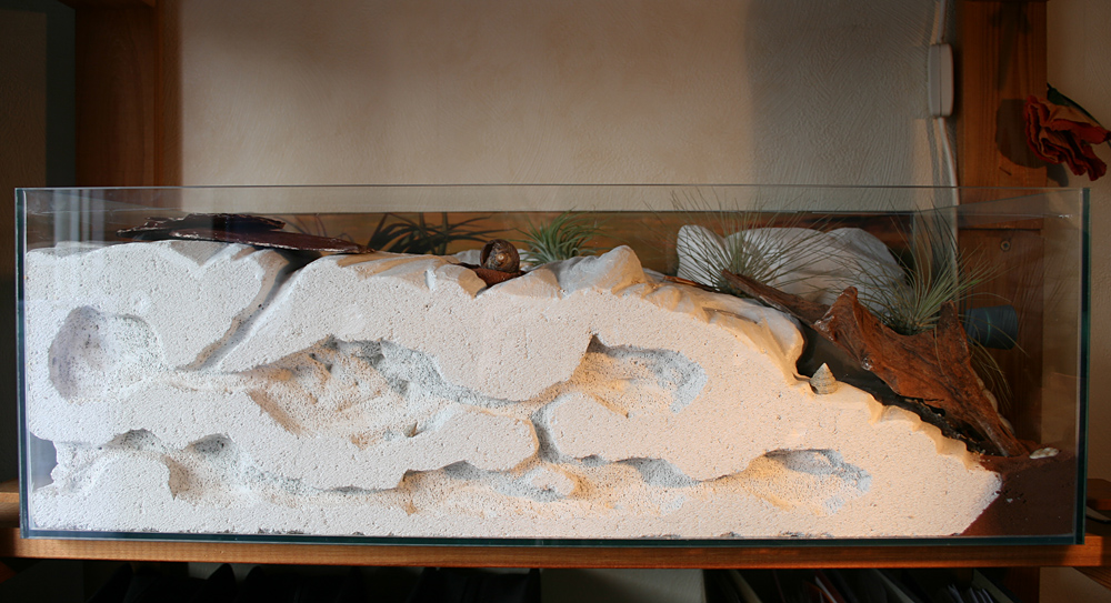 Ich habe mich für ein Ytong-Nest entschieden und wollte dies gern in einem Becken unterbringen, da ich eine Trennung von Nest und Arena irgendwie umständlich finde.