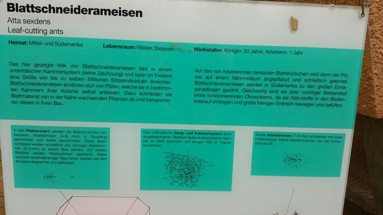 Hi ich war total frustriert, weil ich mit meiner Freundin nach Düsseldorf zum AquaZoo wollte. Da gibts ne riesige Blattschneideranlage. Leider renovieren die und wir sind dann nach Krefeld zum Zoo gefahren- und siehe da- ebenfalls eine schöne Anlage gesehen. Ich habe alles für euch festgehalten.
