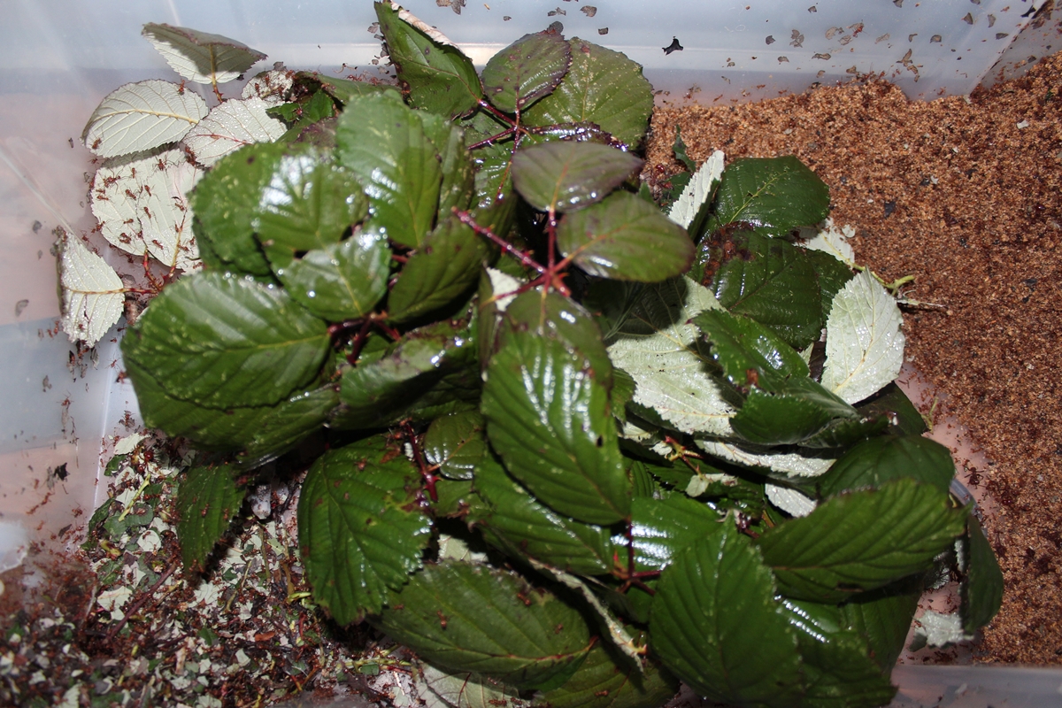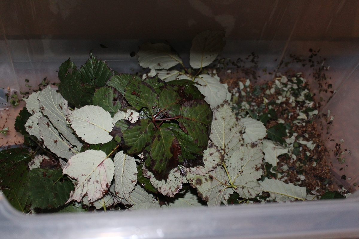 Und da nun die nassen Blätter, die ich später in einem Beutel verpackt ,neben den Ameisen verstaue.