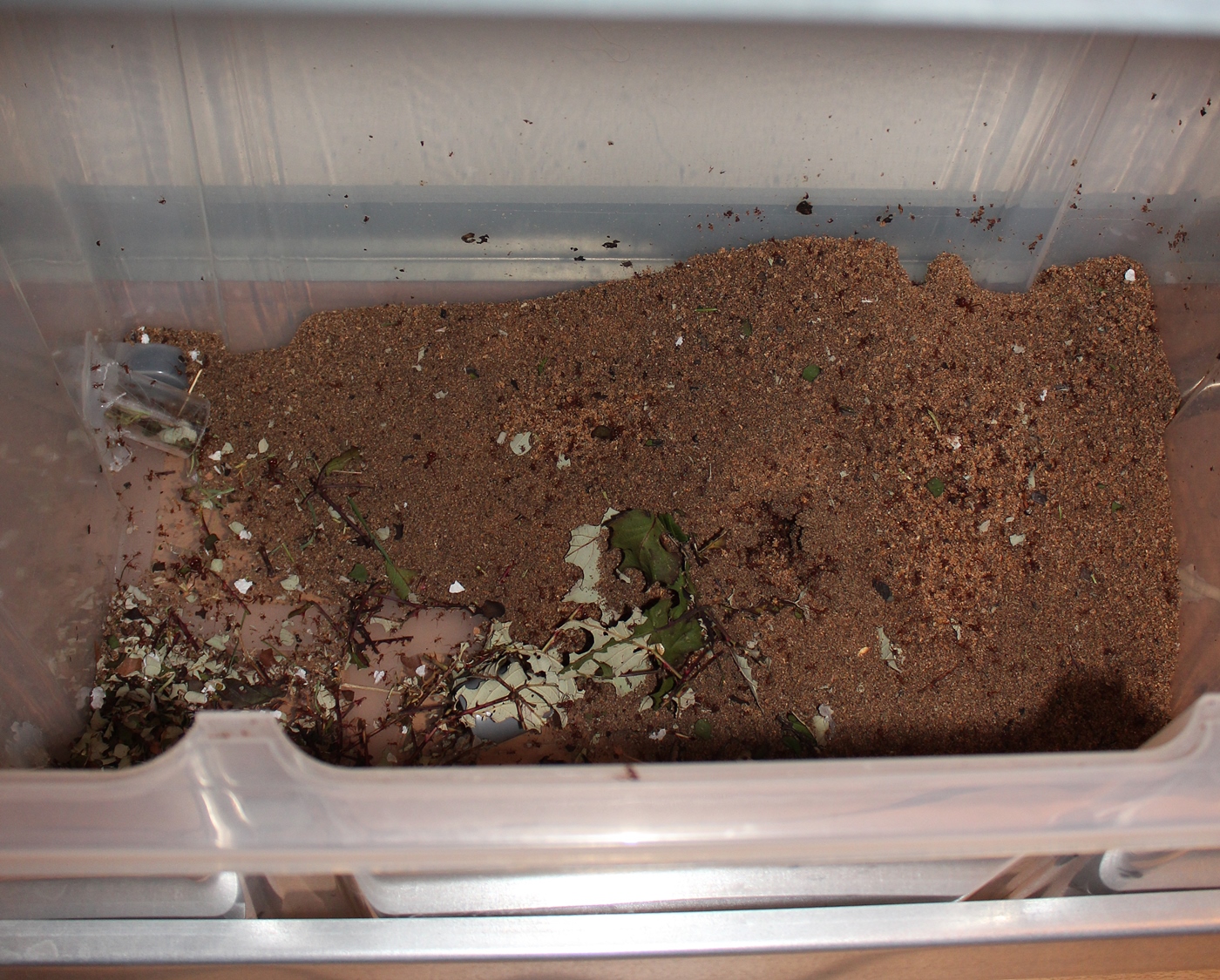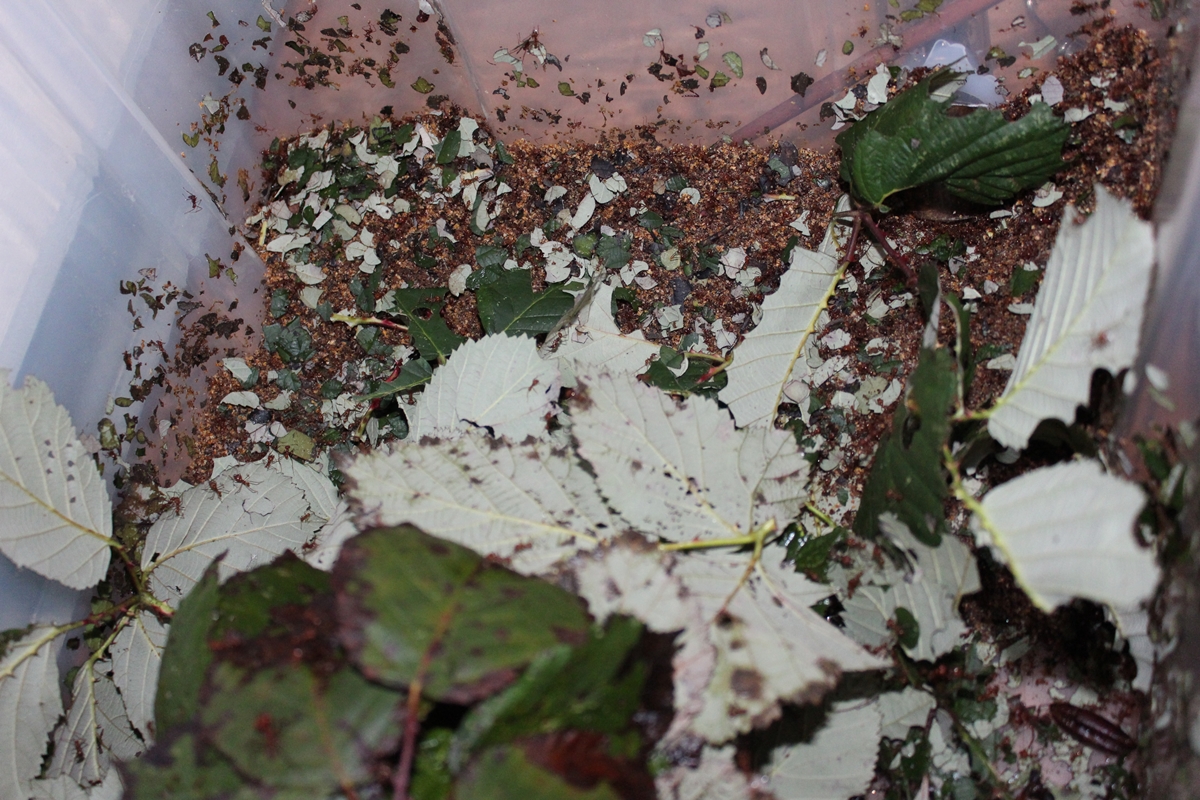 Nochmal zur Blättermenge: in 4 Tagen haben meine Attas 6 volle Zylinder Blätter und 375g Trockenfrüchte verarbeitet.