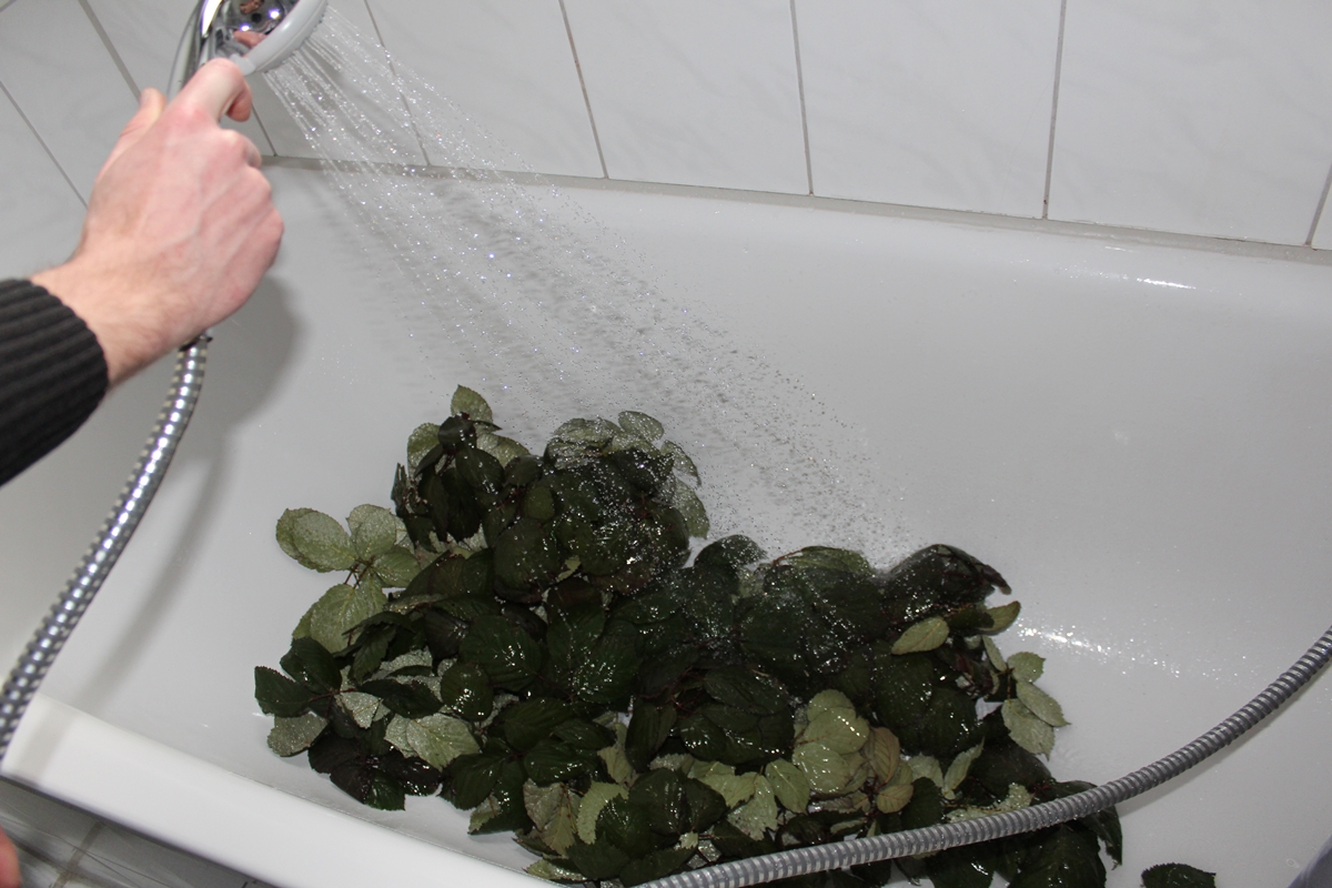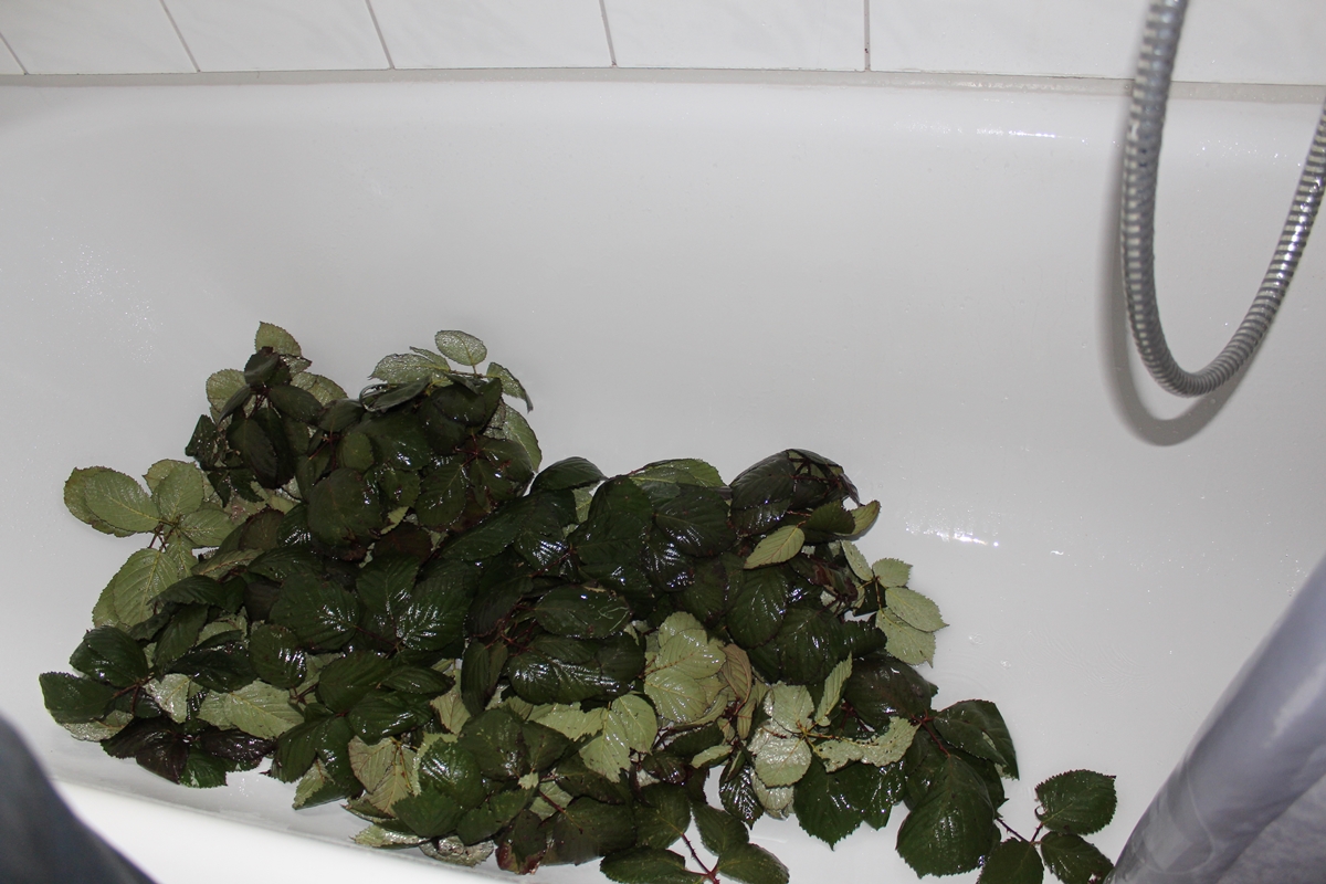 Ich beim Befeuchten der Blätter, ohne diesen Schritt halten sich die Blätter beträchtlich kürzer!