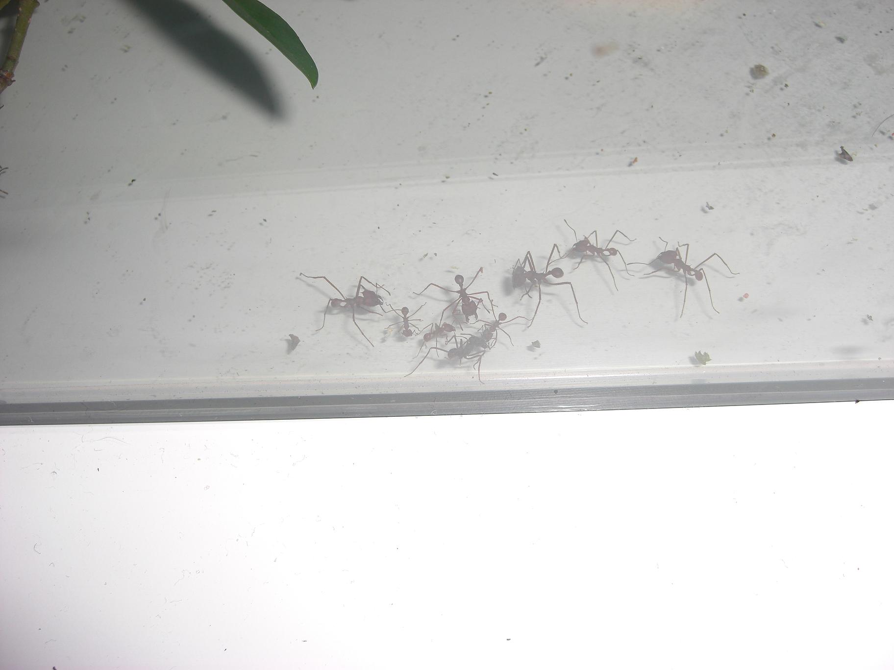 Konnte heute etwas beobachten. Es fing im Laufe des Tages an, und endlich kann man genug sehen, damit es auch für ein Foto reicht. Sie verlagern die Brut. Ich weiß nicht warum, aber sie sind ganz eifrig dabei. Jetzt frage ich mich ob das normal ist, oder ob denen vielleicht irgendwas nicht passt. Dann drängt sich noch die Frage auf was es sein kann. Ihr wisst ja wohin : viewtopic.php?f=149&t=11556&start=0 . Ausfragen klappt nicht, das wird immer mit den Mandibeln abgewehrt, zum Thema "kein Kommentar". ;)