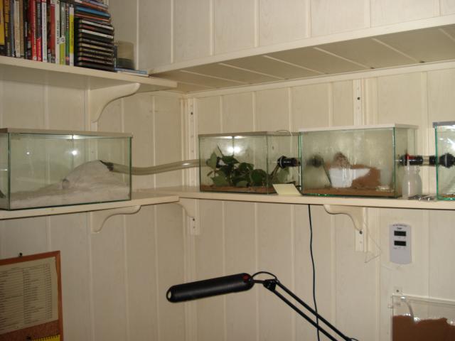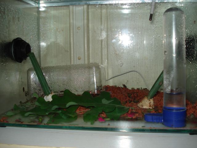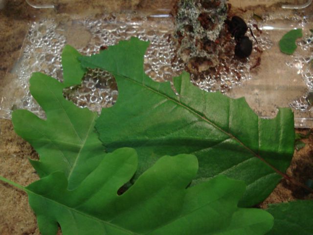 Ich halte die Kolonie in drei 30x20x20 cm (2 Nestkammern und einer Müllkammer), einer 40x30x20 (als Vorkammer in der ich ihnen unter anderem Wasser anbiete) und einer großen Futterkammer.