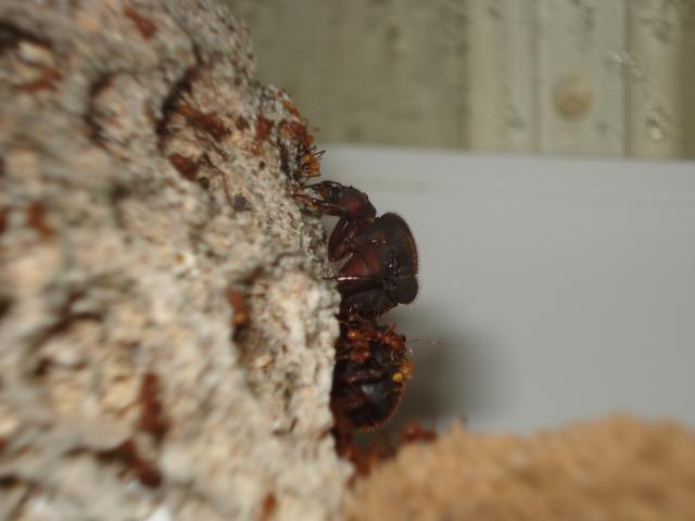 Dann gibts noch zu berichten, dass ich das Sand-Lehm-Gemisch, das in der Nestkammer war, entfernen und gegen seramis ersetzt habe, weil sich dort grüner Schimmel angesetzt hatte. Das lag daran, das dort mal Honigwasser ausgelaufen war.