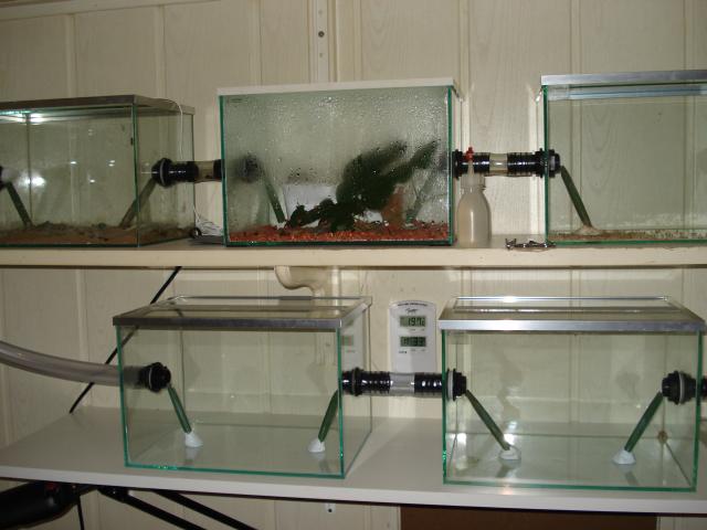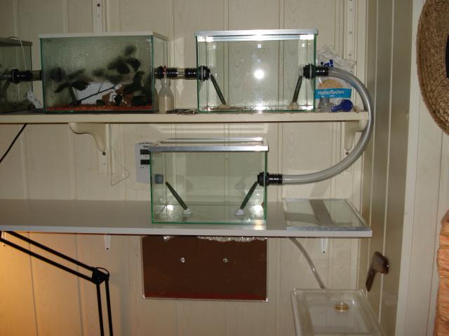 Alle Becken sind mit Verbindungsstücken und meterlangen Röhren verbunden.