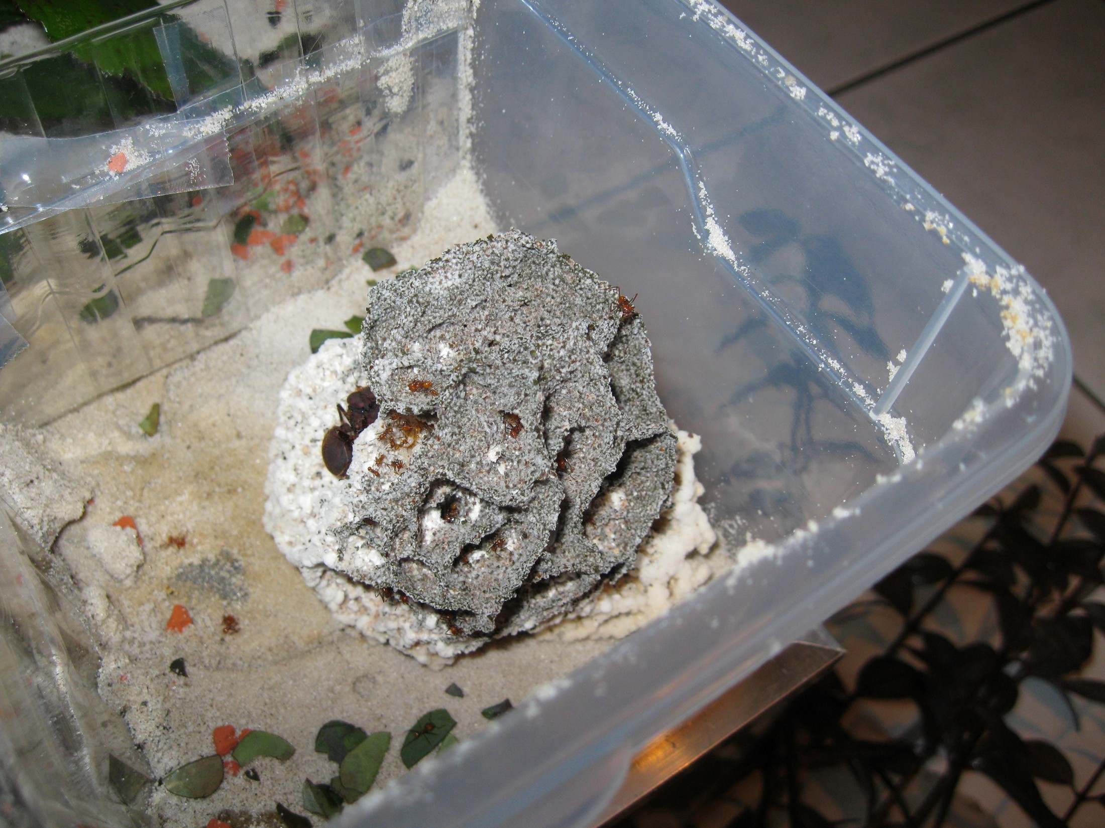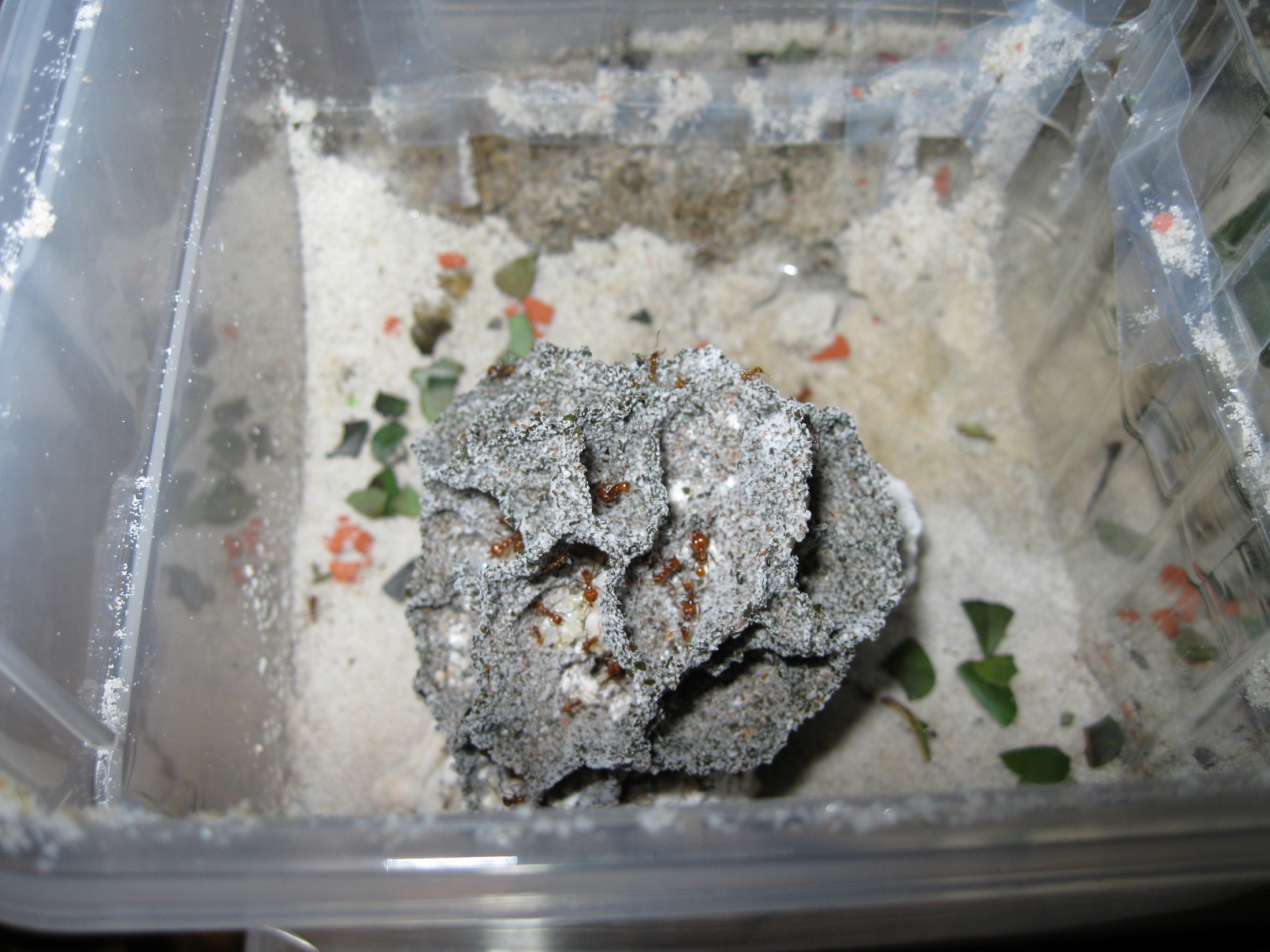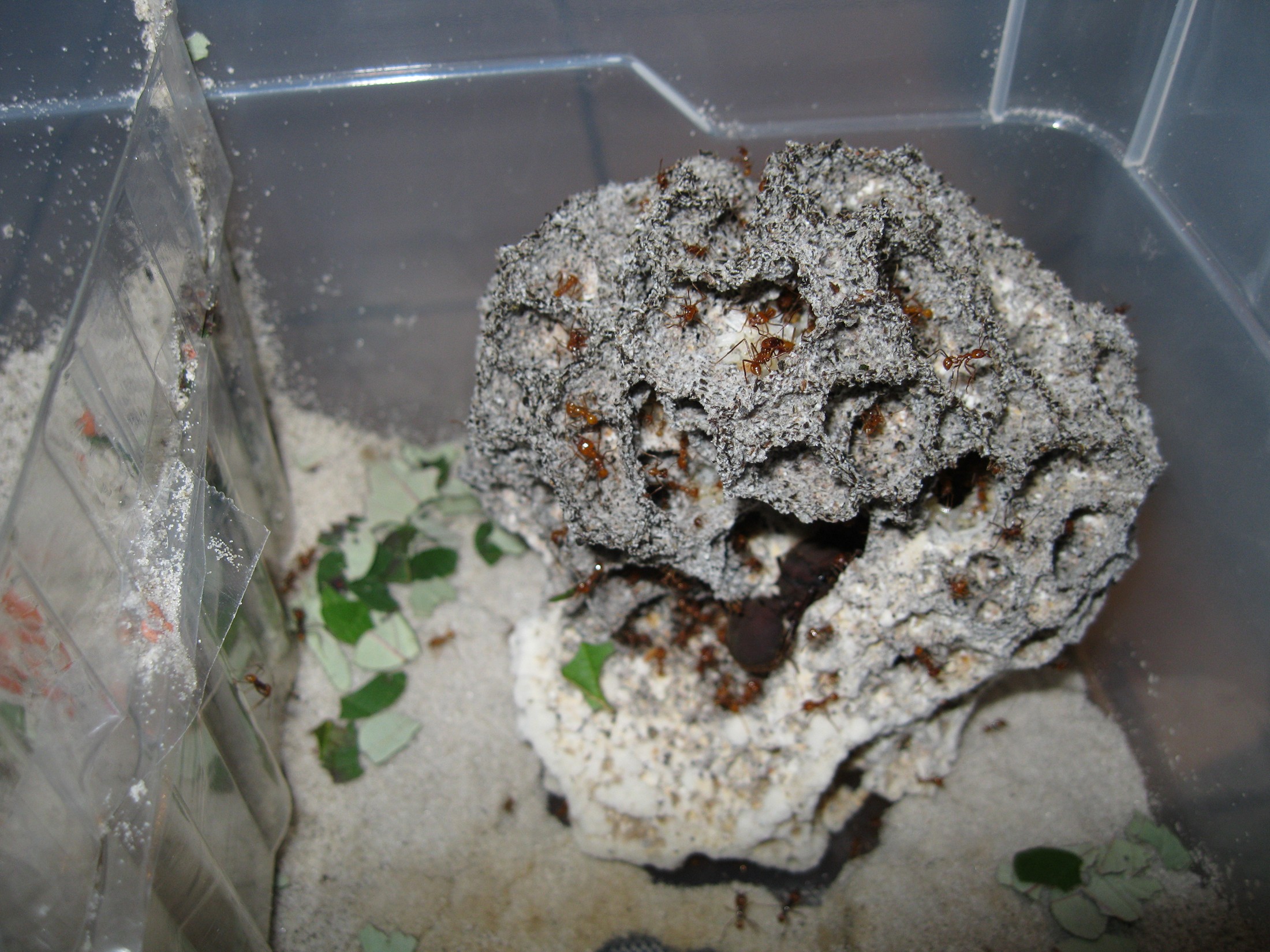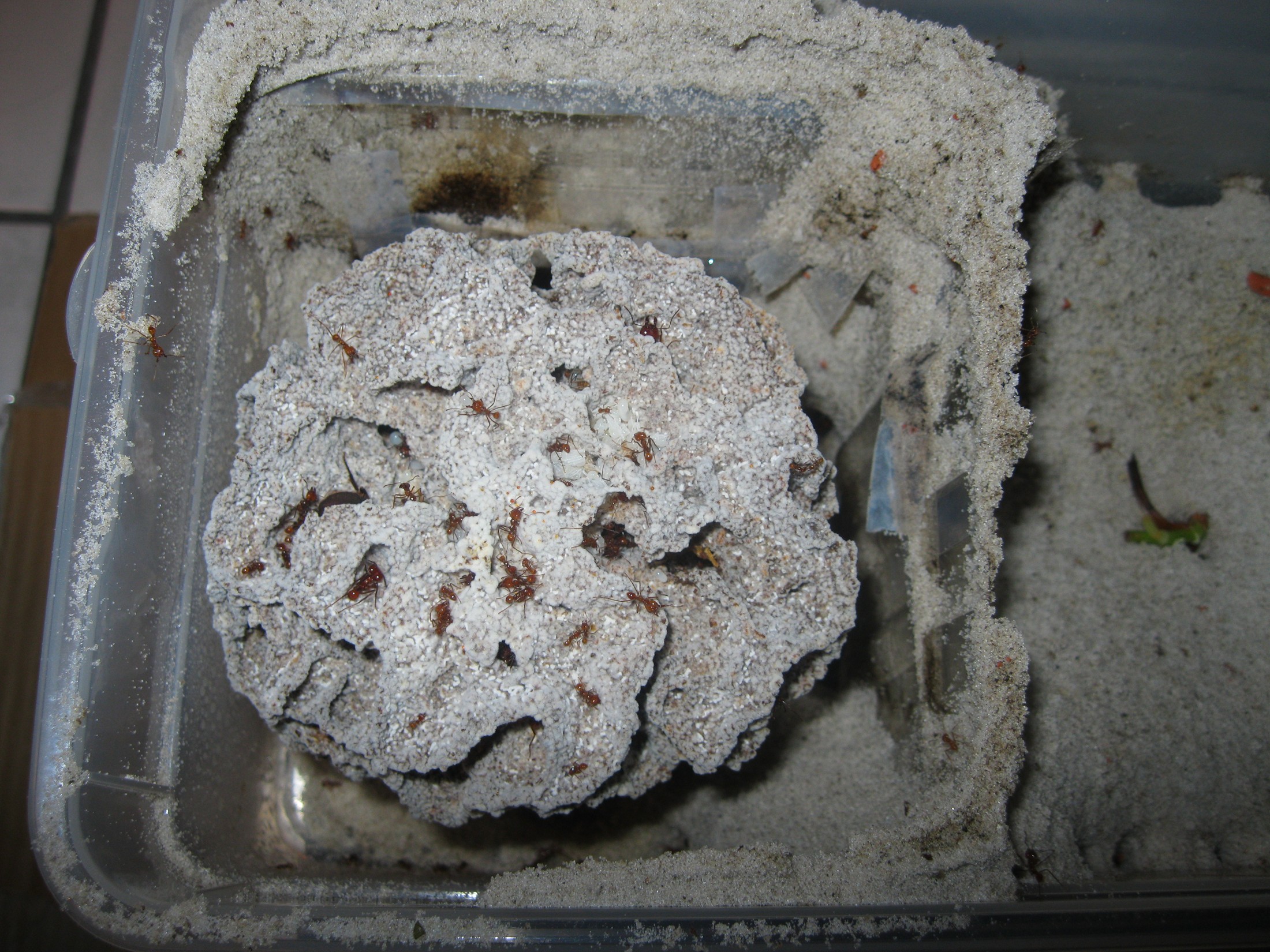 Also die Kolonie wächst kontinuierlich und schnell, so wie ich es von den Blattschneiderameisen gewohnt bin. die Königin ist fast in den Pilz integriert und wird immer mehr mit einbezogen, in die zukünftigen Pilzstrukturen und wird denke ich mal bald von der Bildfläche verschwinden.