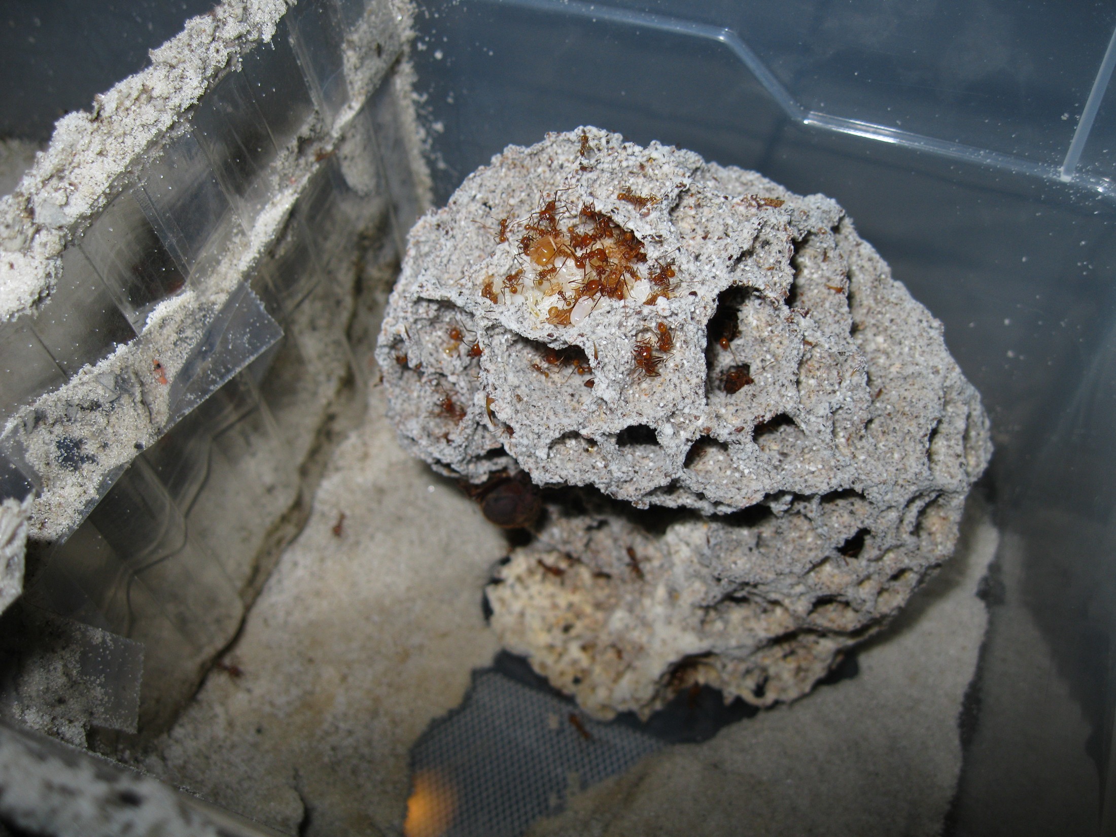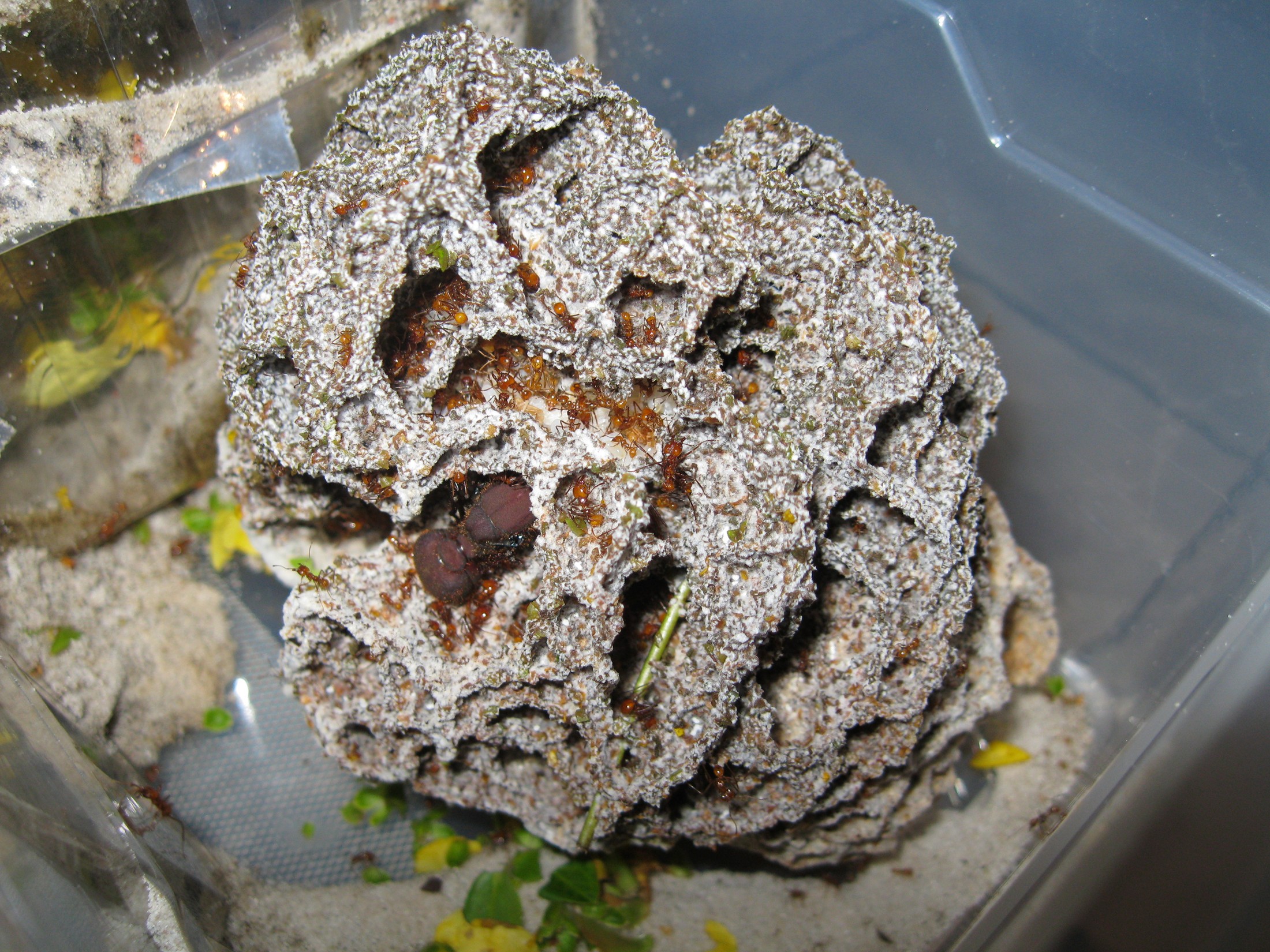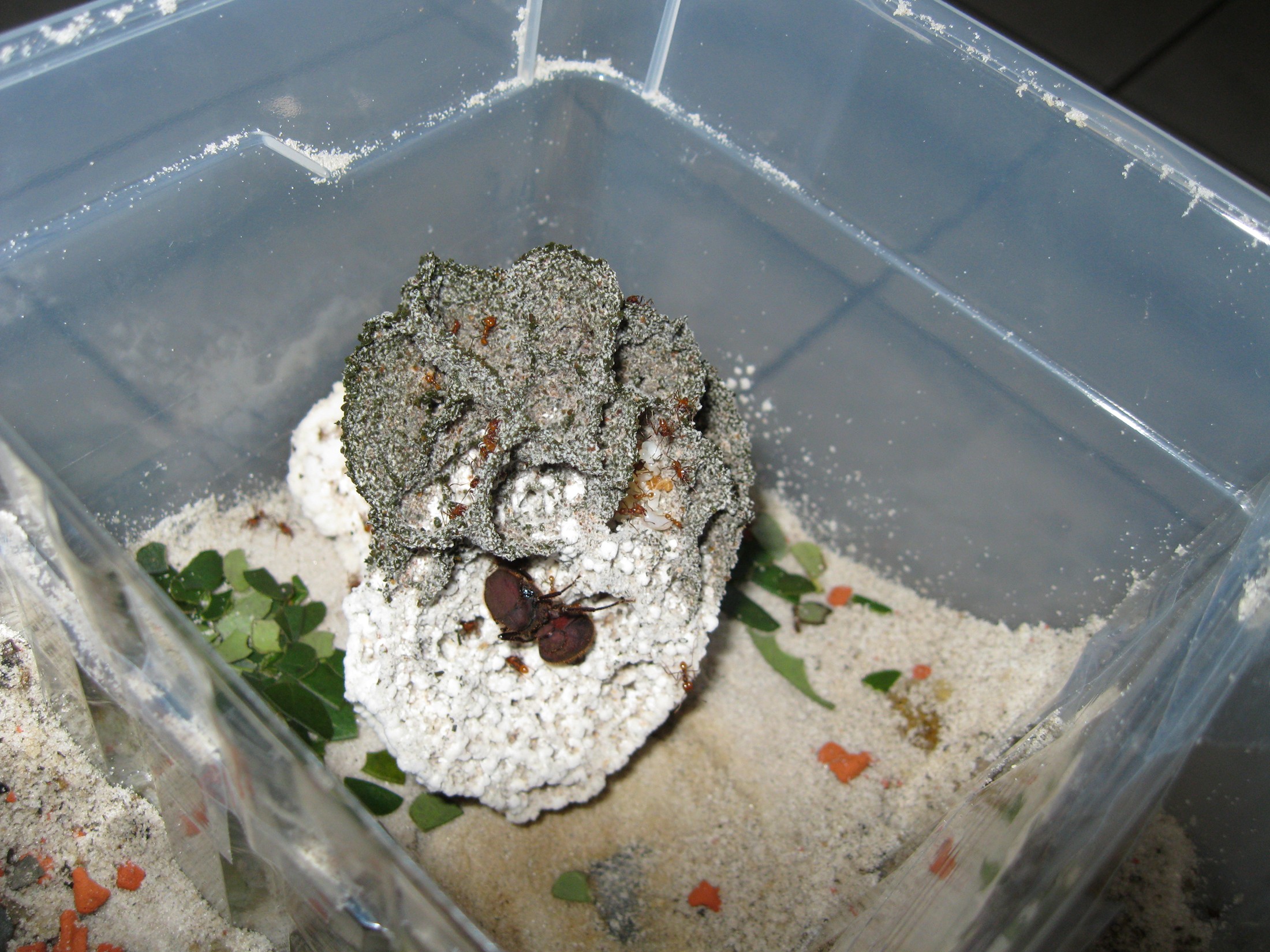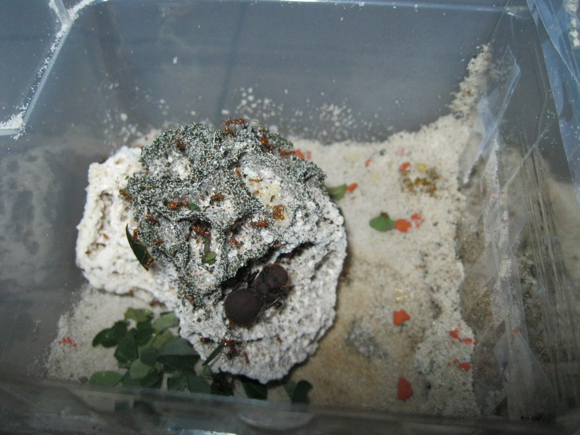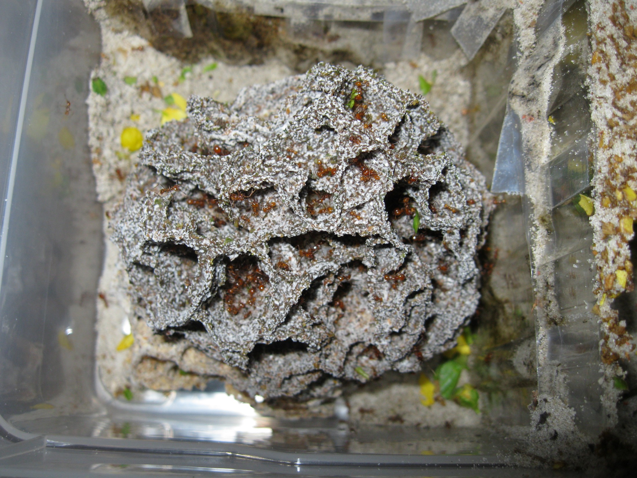 Also die Kolonie wächst kontinuierlich und schnell, so wie ich es von den Blattschneiderameisen gewohnt bin. die Königin ist fast in den Pilz integriert und wird immer mehr mit einbezogen, in die zukünftigen Pilzstrukturen und wird denke ich mal bald von der Bildfläche verschwinden.