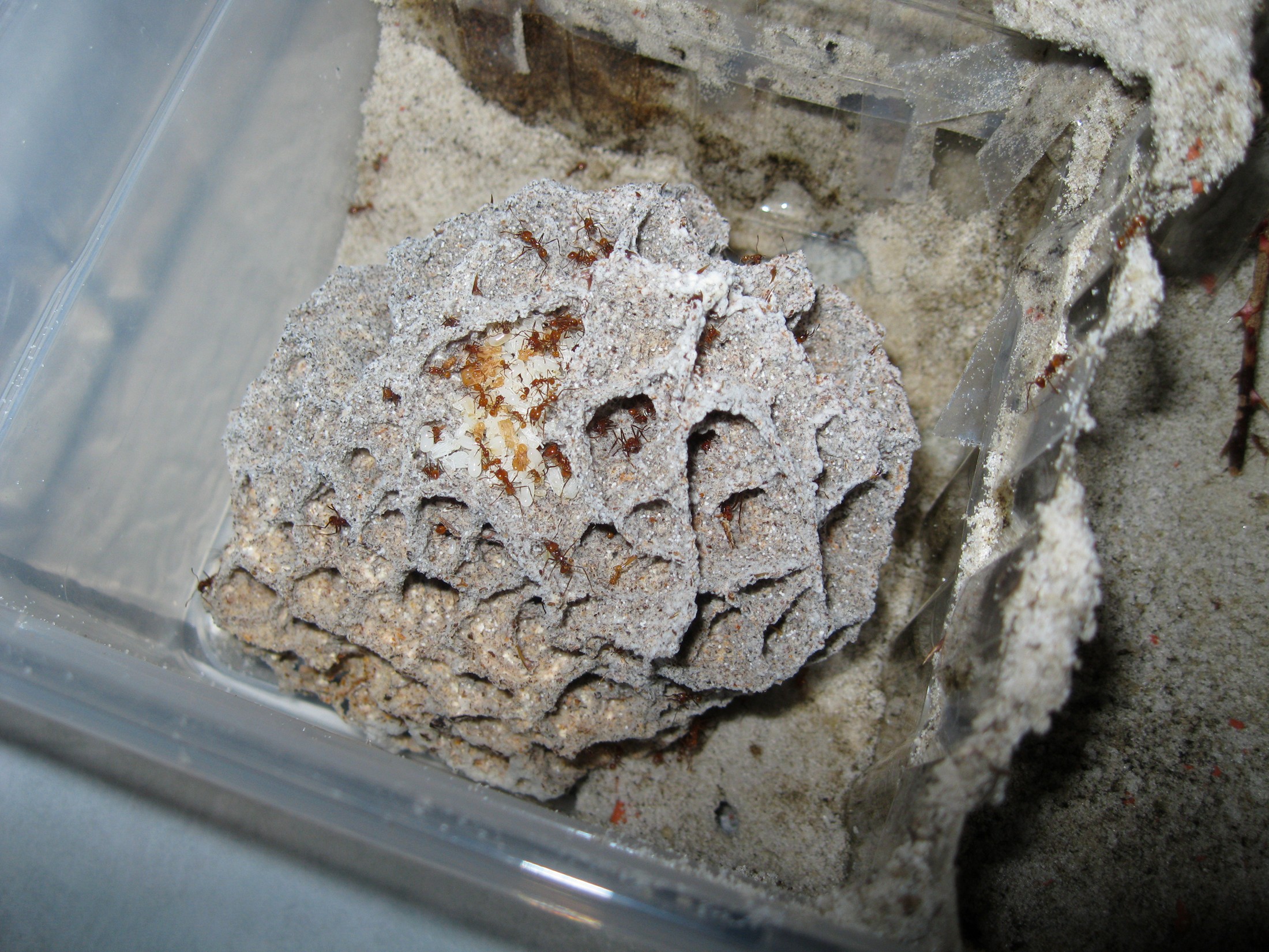 Der Pilz wächst und immer mehr Pilzwaben füllen sich mit Eiern. Mittlerweile sind 3 Waben mit Eiern bestückt. Weitere Waben befinden sich im Aufbau bzw. werden Kultiviert. Sonst geht es der Kolonie Top und entwickelt sich prächtig.