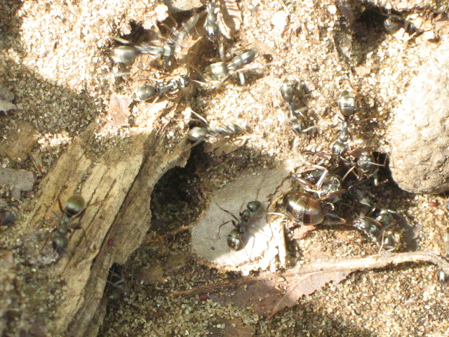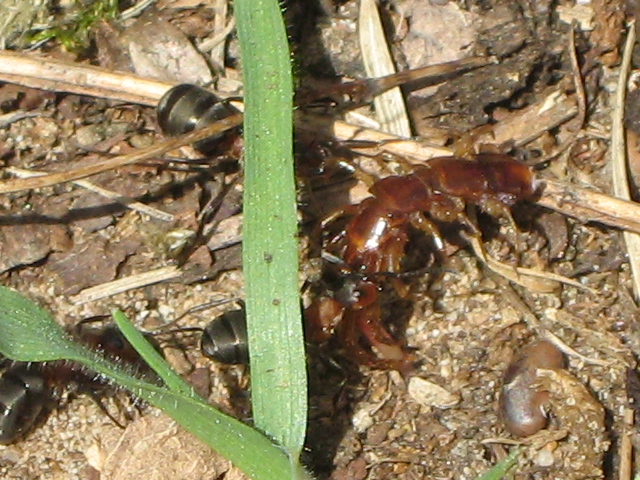 Hier hatte ich Glück und konnte zwei Ameisen mit Beute beobachten: