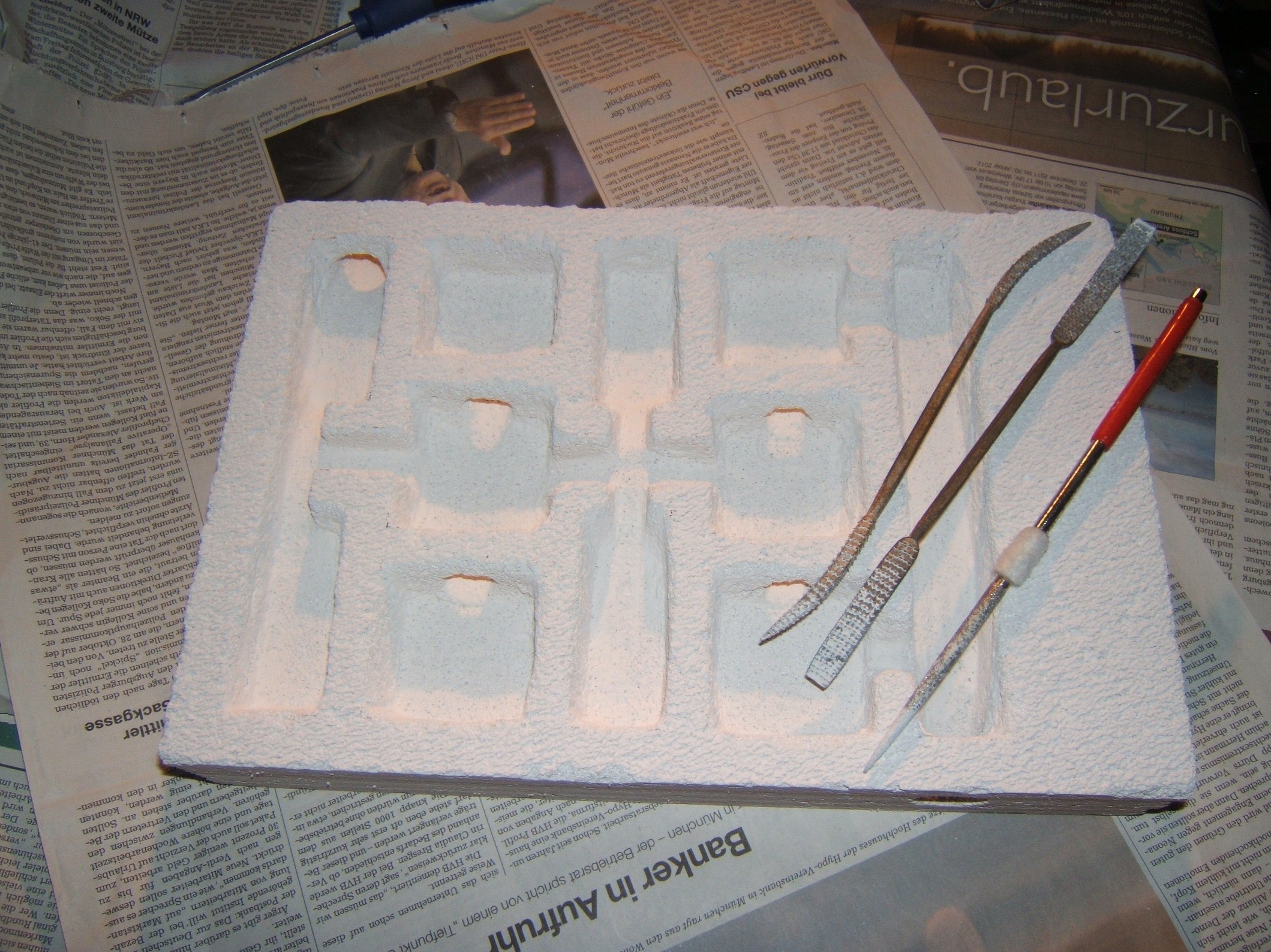 Zum Bearbeiten den Ytongs nahm ich ein kleines Holzfeilen-Set und einen Schlitzschraubenzieher.