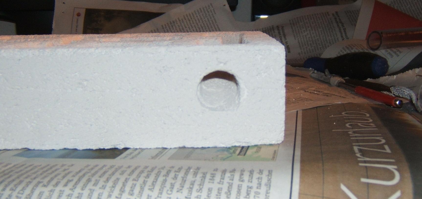 Die Anschlüsse. Eigentlich genauso wie die Tunnel bei Schritt 3. Erst ein Loch gebohrt und dann angepasst.