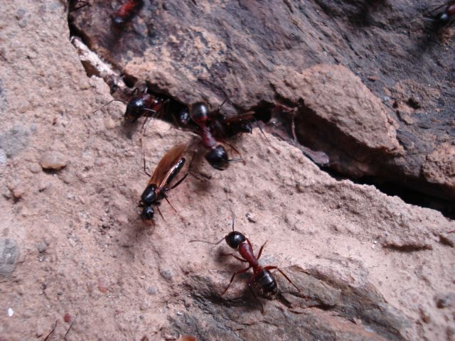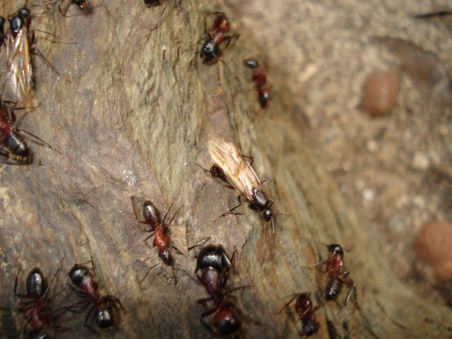 Hier einige Aufnahmen, aus unserem Wintergarten, der Art Camponotus ligniperda von heute (29.03.08) beim ausschwärmen der geflügelten Männchen.