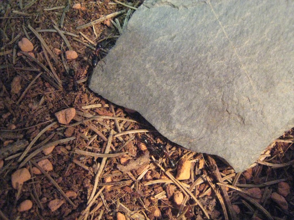 Zeitweise waren 20+ Ameisen unter dem Stein.