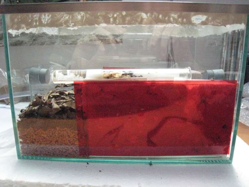 Die Kolonie ist heute angekommen und umfasst etwa 25 Ameisen und viel Brut. Aber erstmal wie alles anfing: