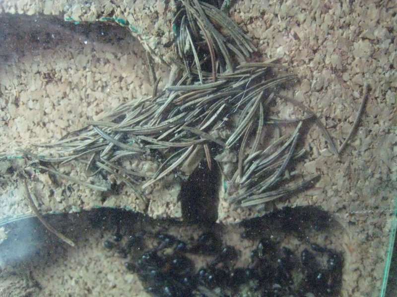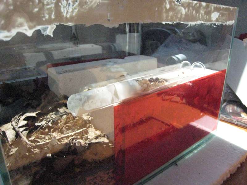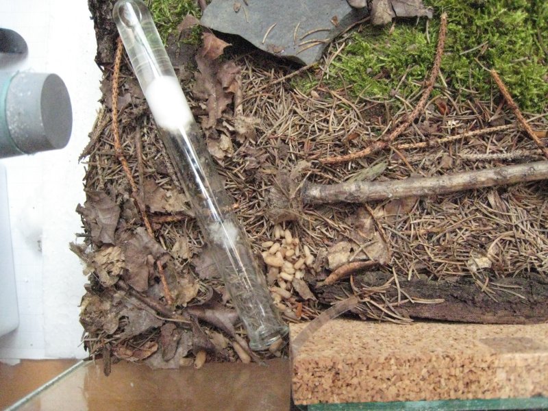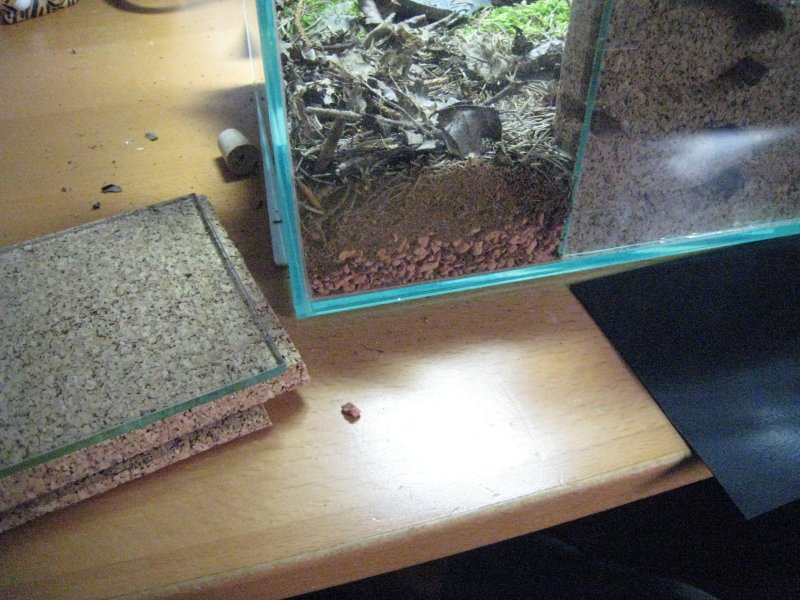 Sie schien sie gar nicht zu interessieren. Für mich ein Schock, da ich mir sicher erhofft hatte, das die "alte Brut" angenommen wird. Andererseits hat mich die Dame wieder überrascht, indem sie prompt ins Korknest gelaufen ist. Was sie da gemacht hat weiß ich nicht, denn ich habs mit schwarzer Folie abgedeckt, um es ihnen genehm zu machen.