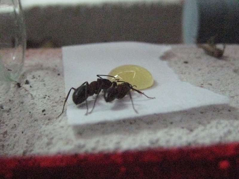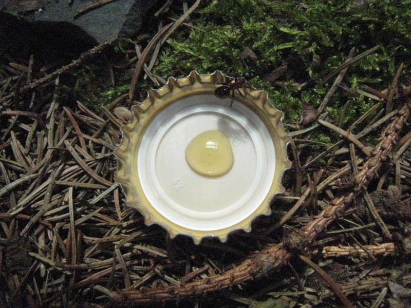 ). Als die erste Ant ihn entdeckte, lief sie direkt am Honigwasser vorbei. Scheinbar waren alle satt. Umso besser.