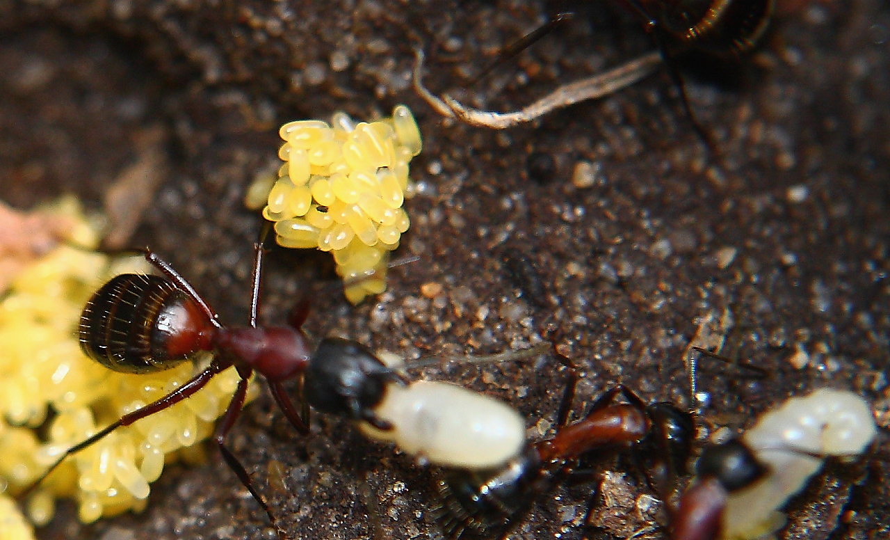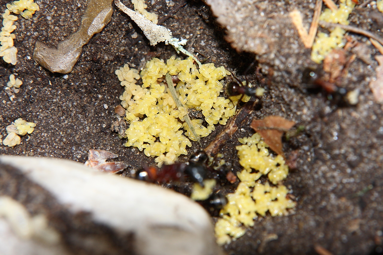 Das sind eindeutig Eier, außerdem müsste es Erne ja wohl besser wissen, schließlich war er vor Ort und hat die Eier gesehen und wenn er sagt, dass es welche sind, dann sollte man wohl einem langjährigen Ameisenhalter zutrauen, dass er Eier von Larven unterscheiden kann.