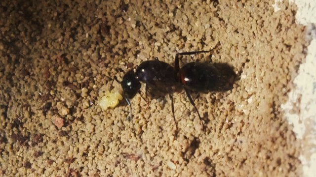 Heute habe ich 30 Arbeiterinnen und bin sehr damit zufrieden. Ich noch biete ihnen Insekten und Zuckerwasser etc, aber sie scheinen das Ei-Honig- Zucker Wasser-Gemisch zu bevorzugen.