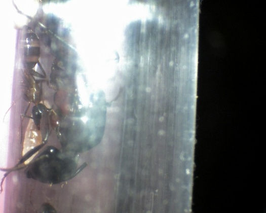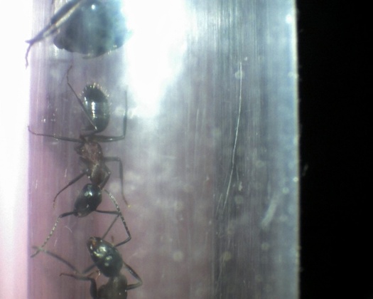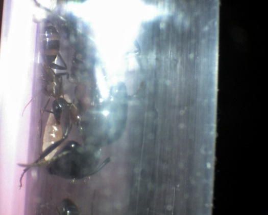 das also war das Warnverhalten, von dem ich schon im Ameisenwiki gelesen hatte, ich dachte eigentlich, dass es so ähnlich war, wie bei anderen Ameisen wie Lasius sp. die den Hinterleibt auf den Untergrund schwangen, aber ansonsten normal standen.
